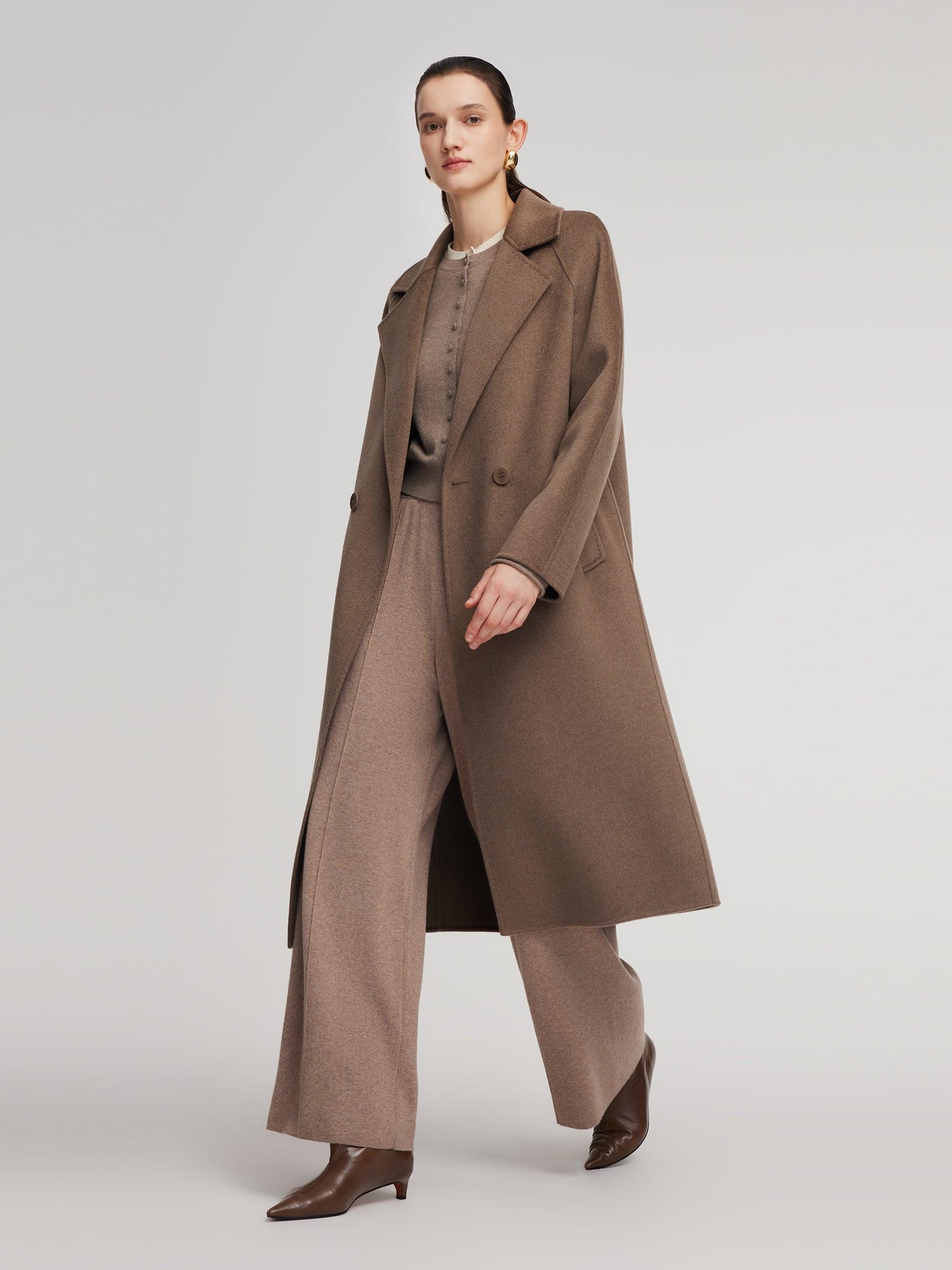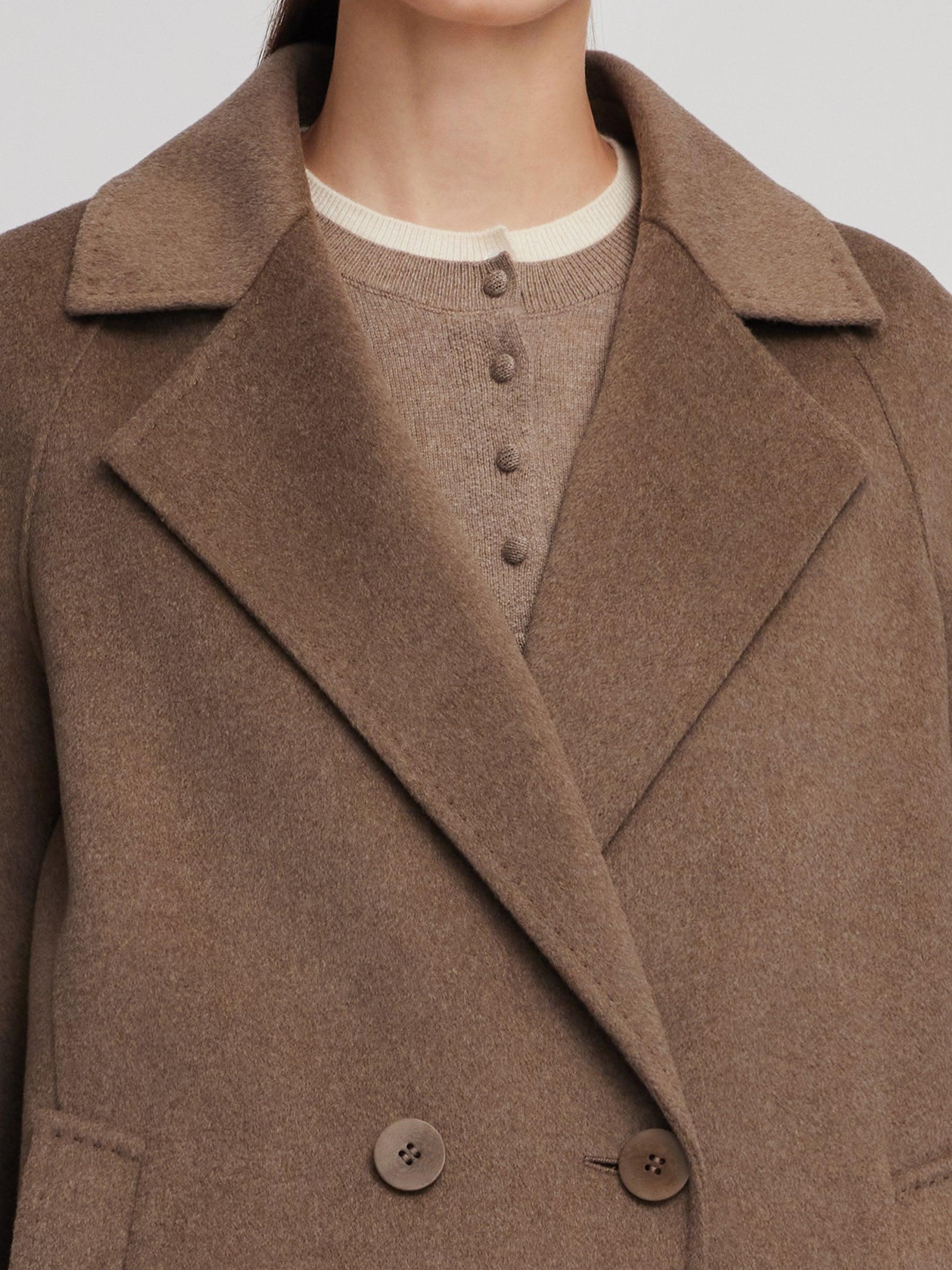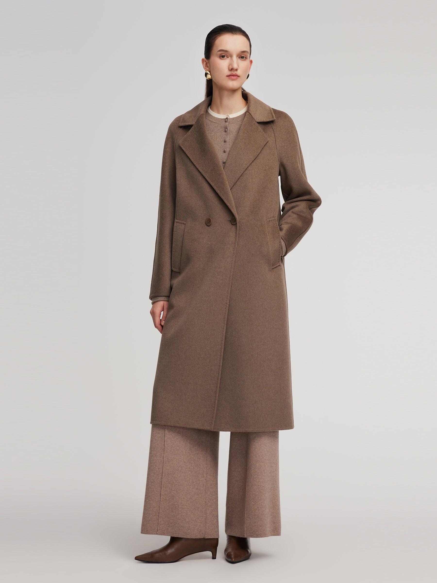 -Cashmere wool blend -H-line fit -With pockets Made from a luxurious blend of 90% wool and 10% cashmere, this overcoat is soft, warm, and effortlessly elegant. The long H-line silhouette offers a relaxed, flattering fit with timeless appeal. Featuring double-breasted buttons and sleek inset pockets, it blends minimalis
