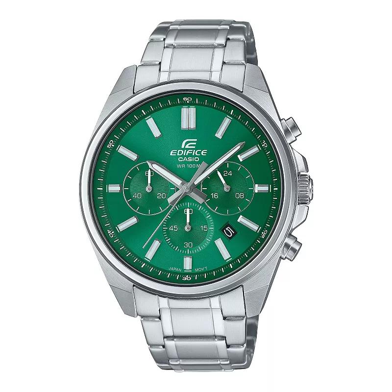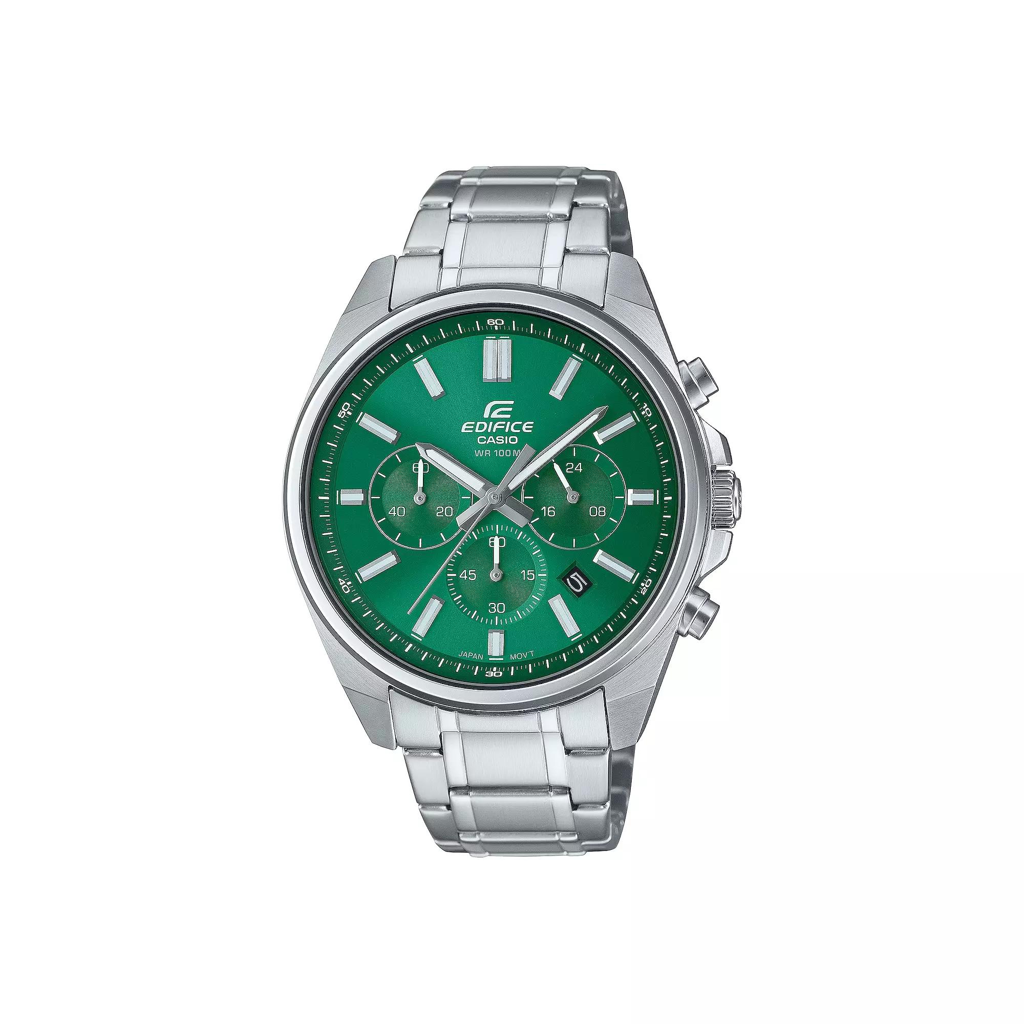 Complete his look with this Casio Mens Edifice Stainless Steel Chronograph Watch. Click on this JEWELRY & WATCHES GUIDE to learn about fit, styles, materials and more!Complete his look with this Casio Mens Edifice Stainless Steel Chronograph Watch. Click on this JEWELRY & WATCHES GUIDE to learn about fit, styles, materials and more!FEATURES Chronograph Chronograph increments: 1 second Chronograph range: up to 60 minutes Chronograph features: elapsed time, split timeDISPLAY Dial type: matte Face cover material: mineral crystal Illumination: luminescent hands & hour markersCASE Material: stainless steel Caseback material: stainless steel Screw-down caseback Diameter: 44 mmBAND Band type: link bracelet Material: stainless steel Clasp: fold-over deployment Band length: 195 mm - 240 mmDETAILS Movement: quartz Power: battery Water resistance: 100 meters Packaging: boxed Manufacturers 1-year limited warranty: For warranty information please click here Imported Size: 44MM. Color: Green. Gender: male. Age Group: adult.