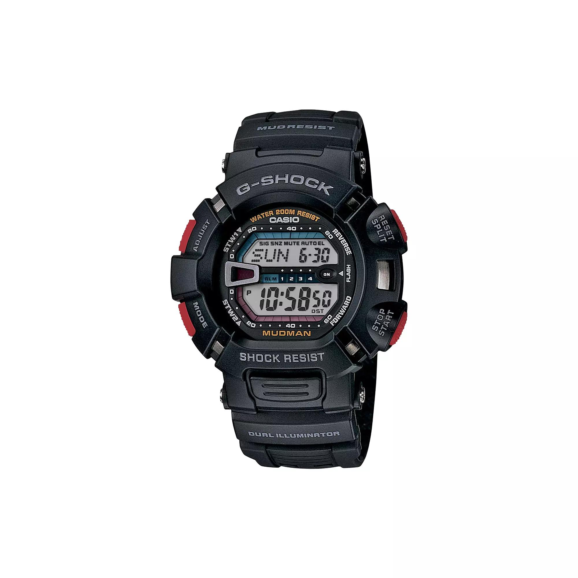 Casio watches are made to keep up with your rugged lifestyle. Featuring shock resistance, mud resistance and more, this men's Casio G-Shock Mudman watch is ideal for any outdoorsman. Watch the product video here. FEATURES Calendar: day & date 4 daily alarms 12/24-hour formats Dual time Chronograph Stopwatch Countdown timer Water resistance: 200 meters Shock resistant Mud resistant Low temperature resistant Mute function CASE & DISPLAY Digital display with LED backlight Face cover: mineral crystal Case: black resin Caseback: stainless steel 46-mm diameter BAND Black resin Buckle clasp 230-mm circumference 18-mm width DETAILS Battery power Manufacturer's 1-year limited warrantyFor warranty information please click here Model no. G9000-1V Size: One Size. Gender: male. Age Group: adult. Material: Plastic.