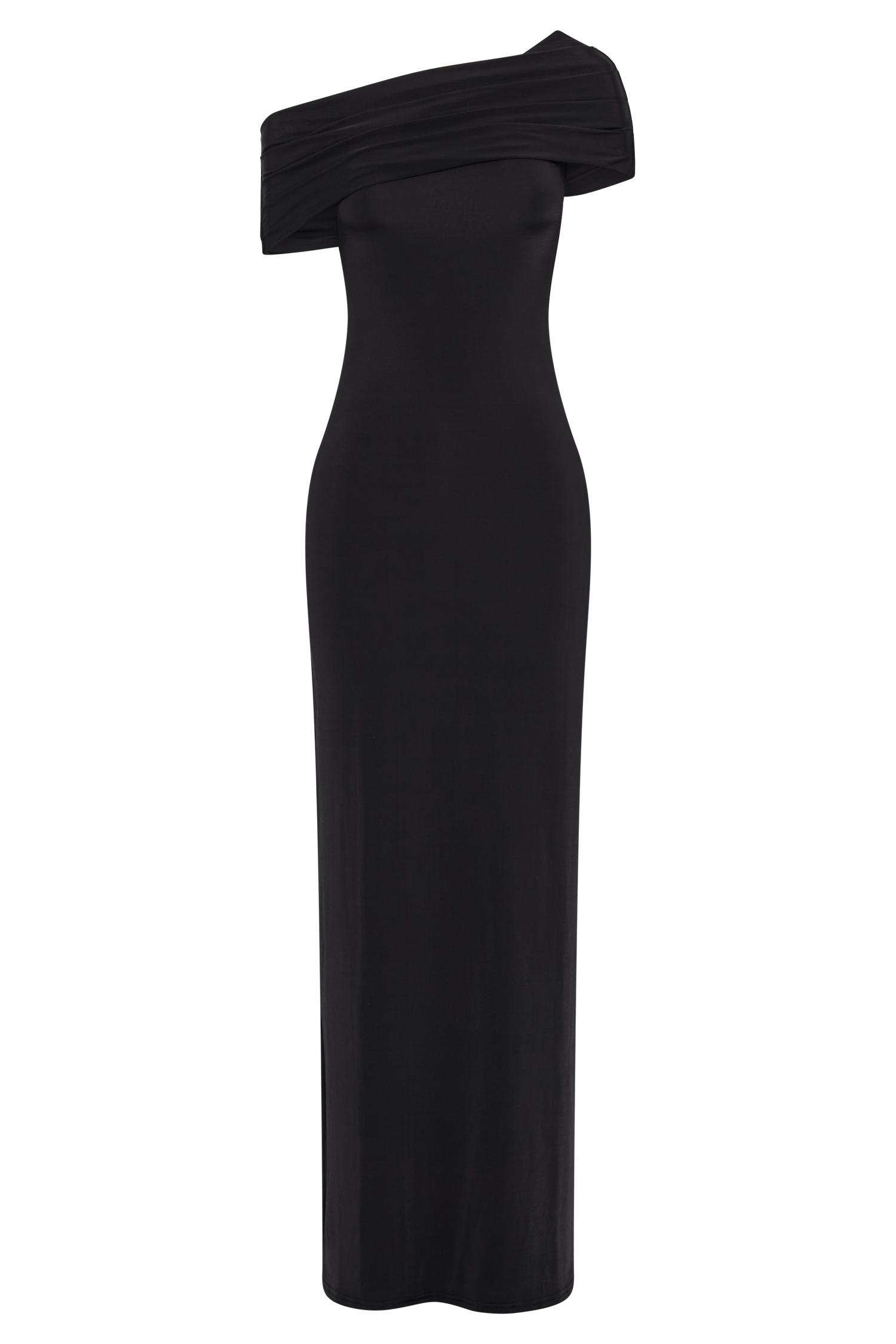 Cassandra Off Shoulder Slinky Maxi Dress - Black Product Image