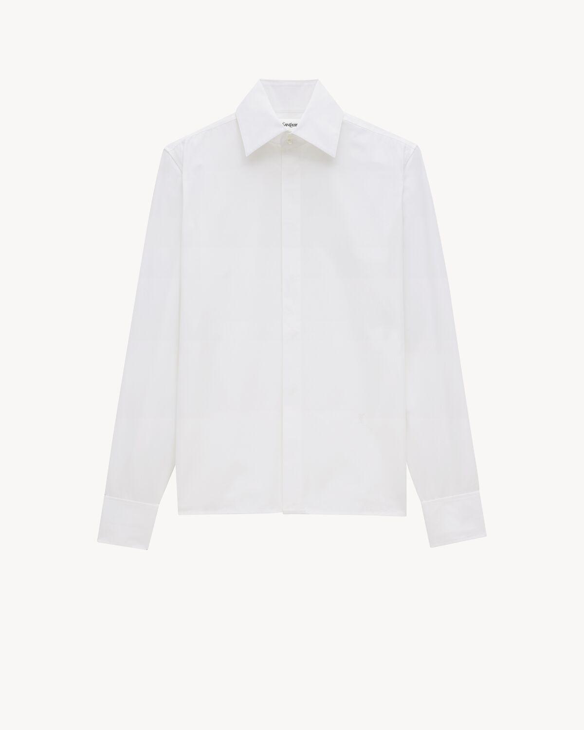 Buttoned shirt made with certified cotton, with a pointed collar and french cuffs, featuring a tonal Cassandre embroidery at the waist.