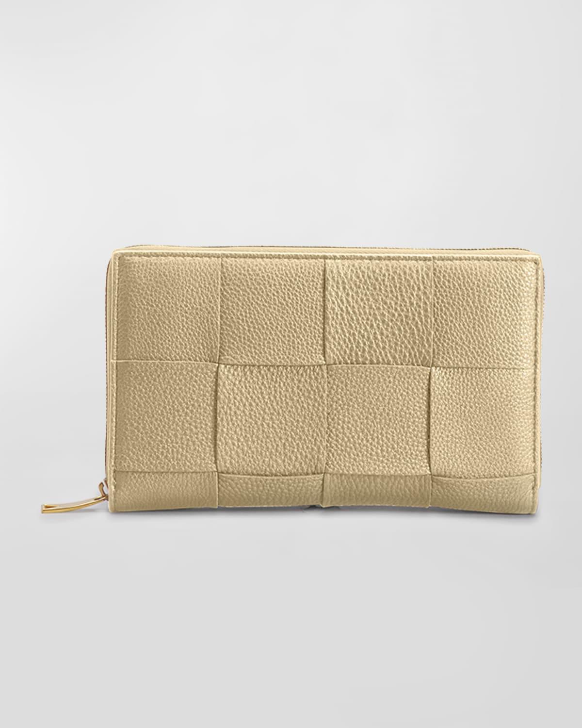 Bottega Venetas Cassette wallet is crafted of calf leather in the houses signature Intrecciato-pattern weave. Zip-around closure Interior zip pocket Twelve interior card slots Two bill pockets Calfskin Made in Italy SIZE 7.5W x 4.5H x 0.75D ABOUT THE BRAND Founded in 1966, the label known for fine Italian craftsmanship with creativity at its core has since catapulted to cult-level status. The houses storied intrecciato pattern in shoes and handbags, alongside its signature minimalist ready-to-wear, have made the label an editor and It-girl favorite. Handbags - Bottega Veneta Handbags > Bottega Veneta > Saks Fifth Avenue > Barneys. Bottega Veneta. Color: Pale Blue.