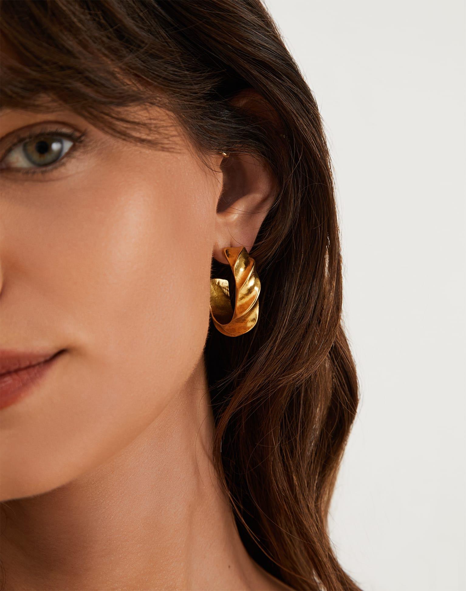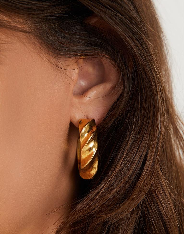 The ViX Cassi Earrings are a bold and elegant take on classic hoops, featuring a sophisticated twisted design, adding texture, and dimension to elevate any look. Style the Cassi Earrings with gold ViX accessories to instantly elevate your resort-ready look. Features: Twisted hoop design Closures at back Style # VH2530