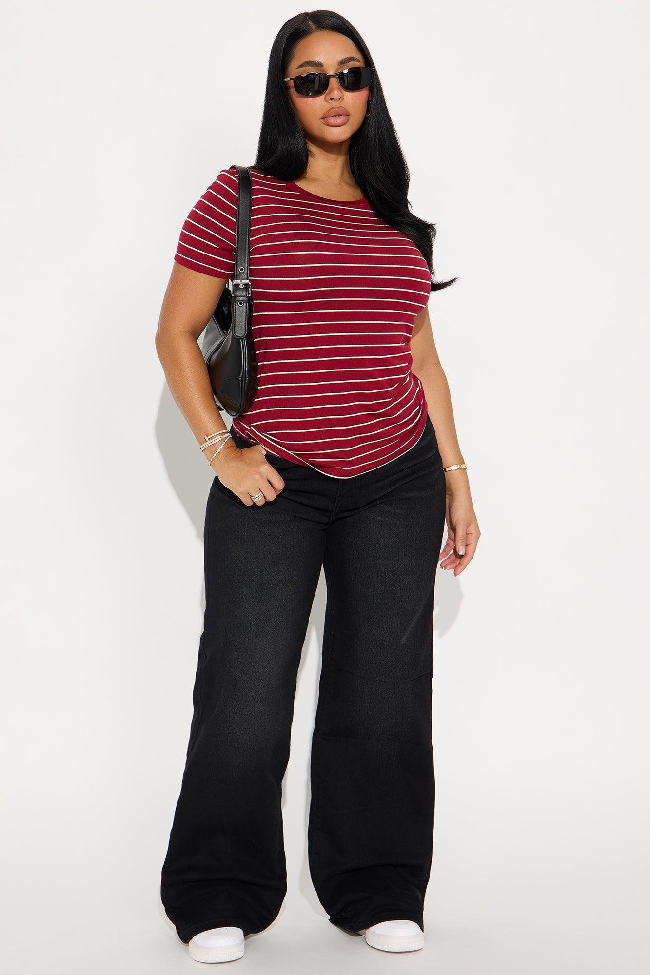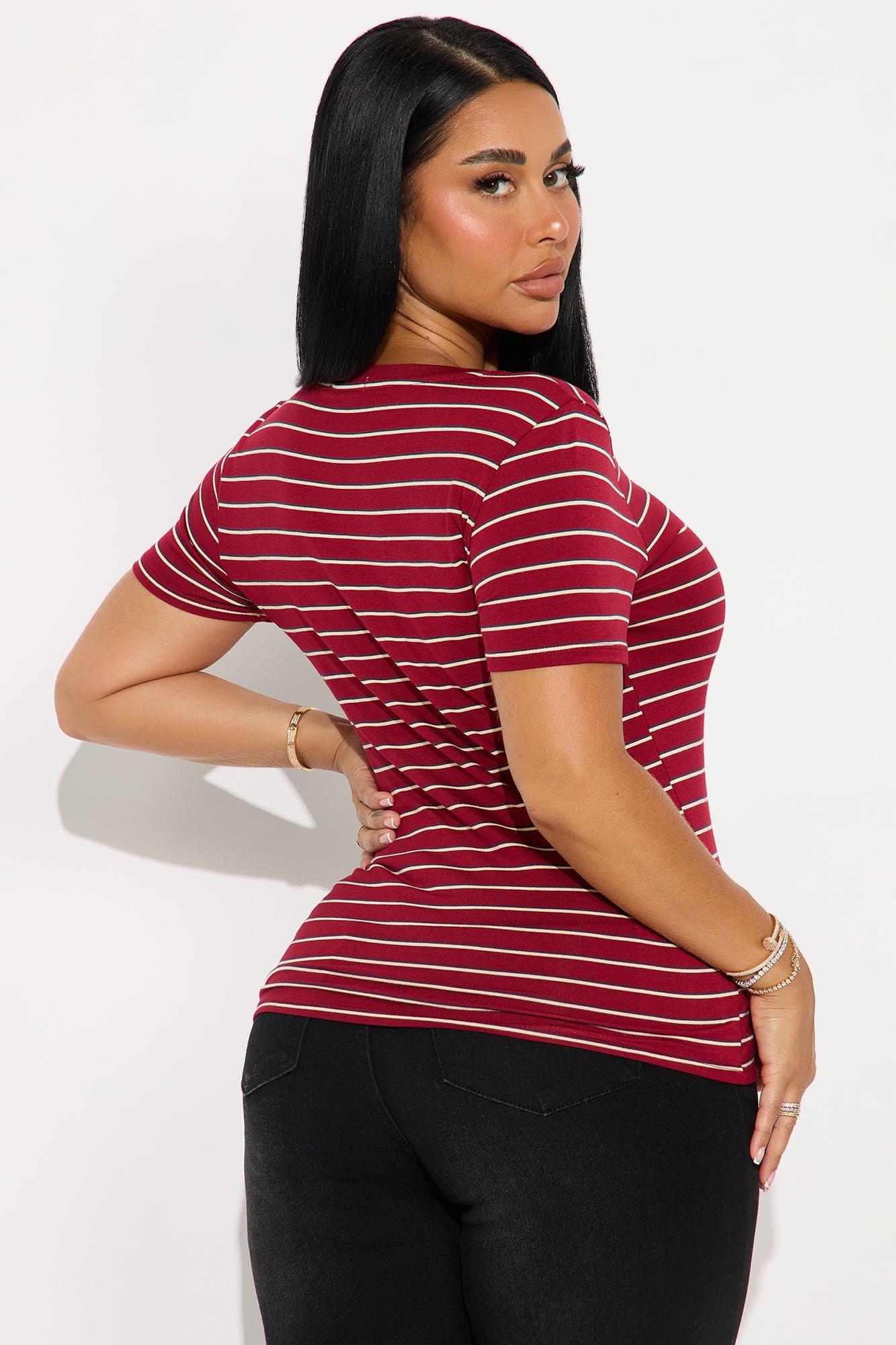 Cassidy Crew Neck Striped Basic Tee - Burgundy/combo Female