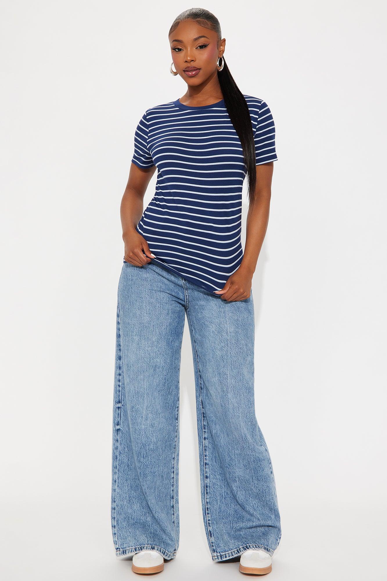 Cassidy Crew Neck Striped Basic Tee - Navy/combo Female