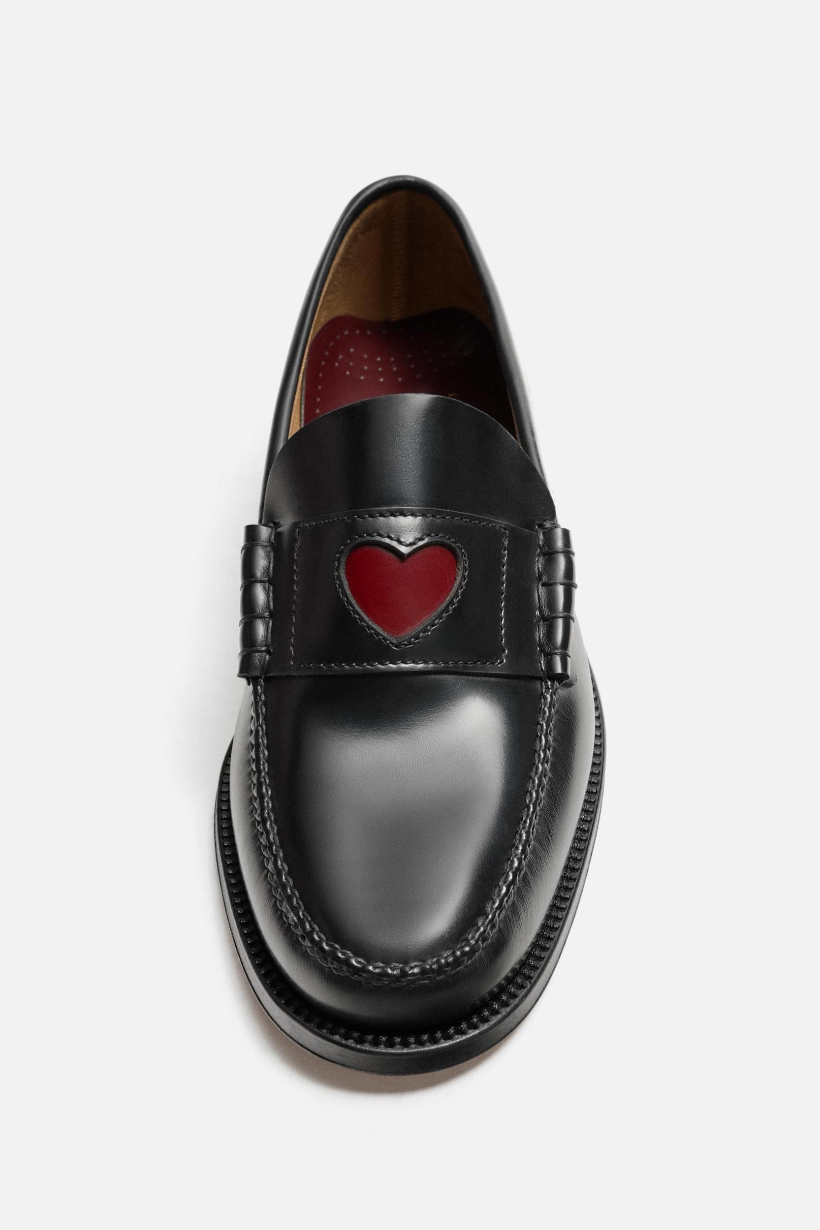 Loafers. Iconic 800 model. Upper part made of high-quality leather with a shiny finish. Saddle detail sewn to the upper with heart-shaped burgundy die-cut details. Leather insoles. Semi-rounded shape. Leather sole sewn to the upper.