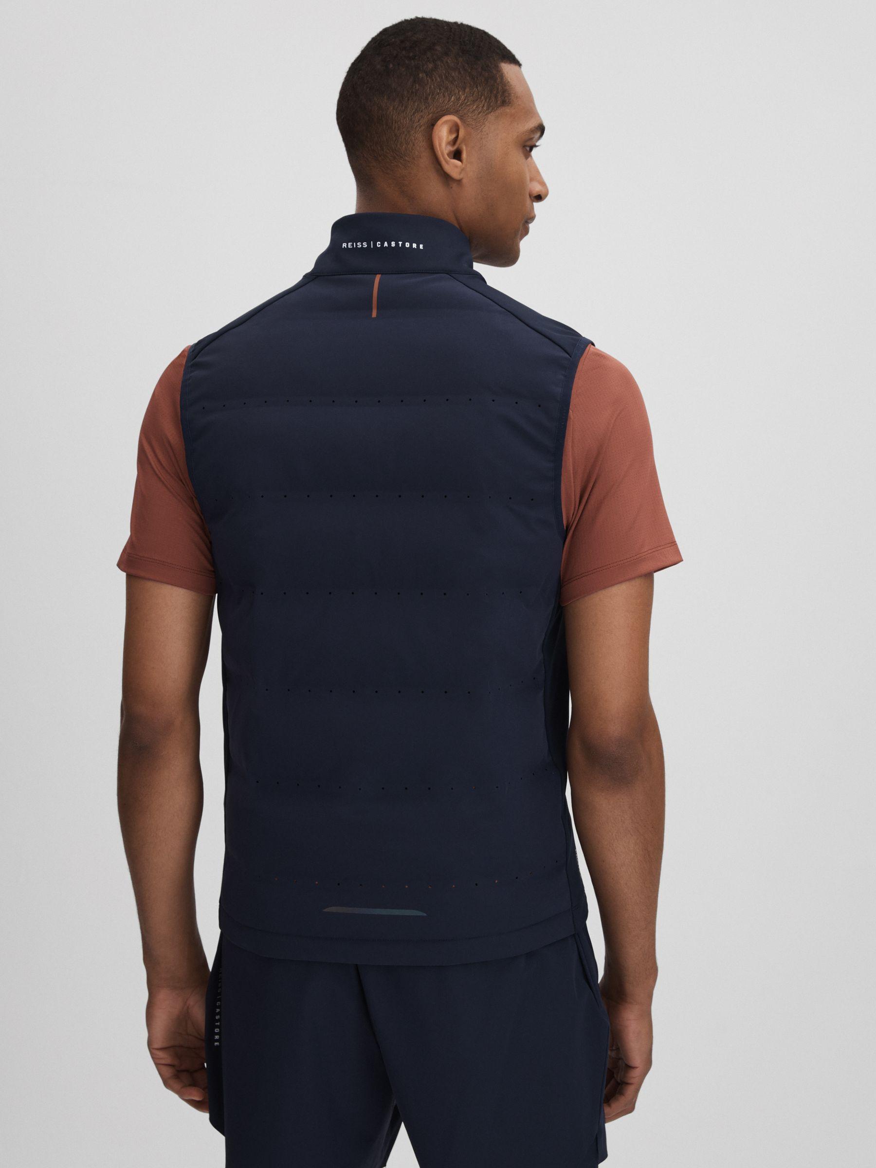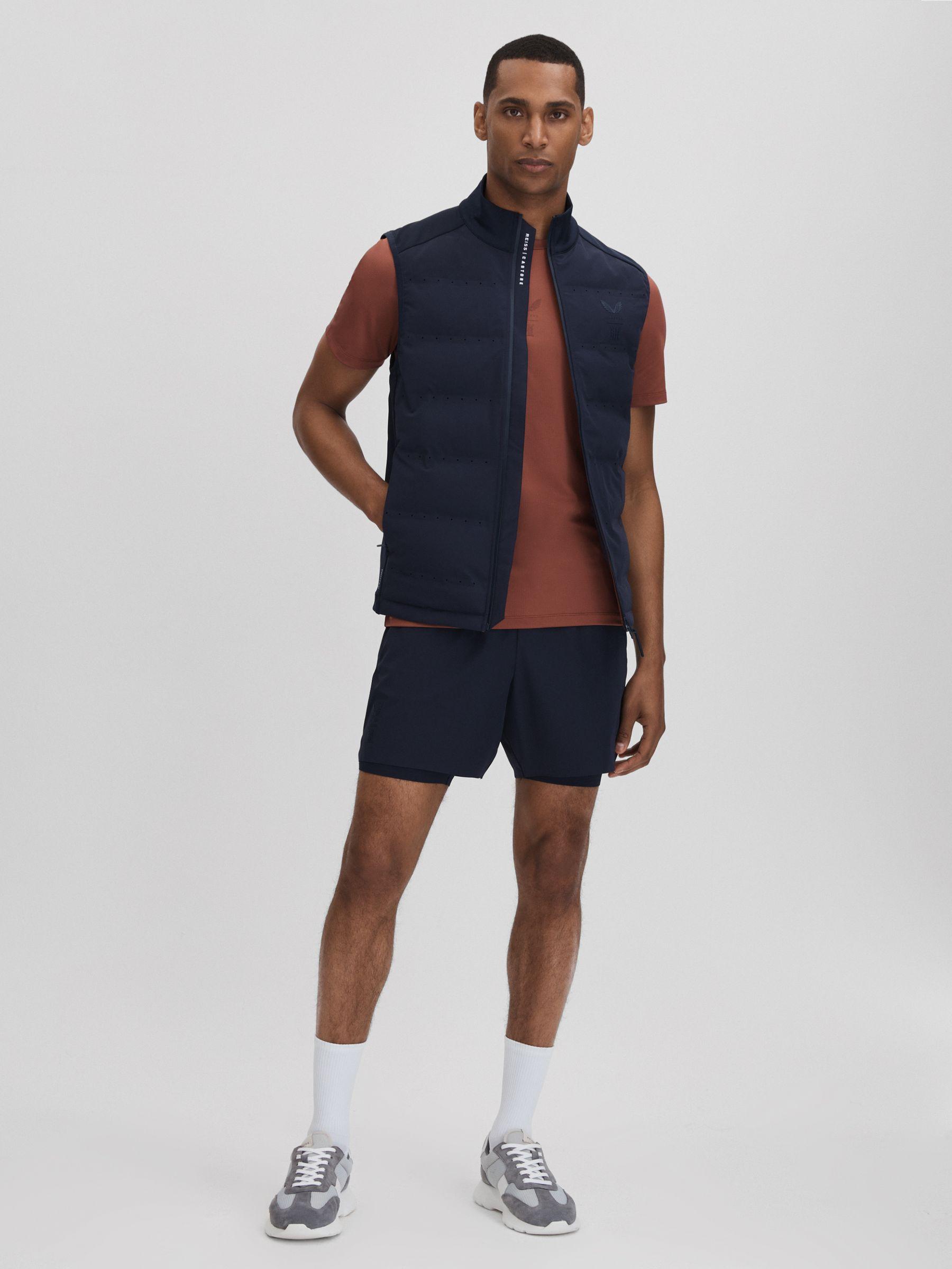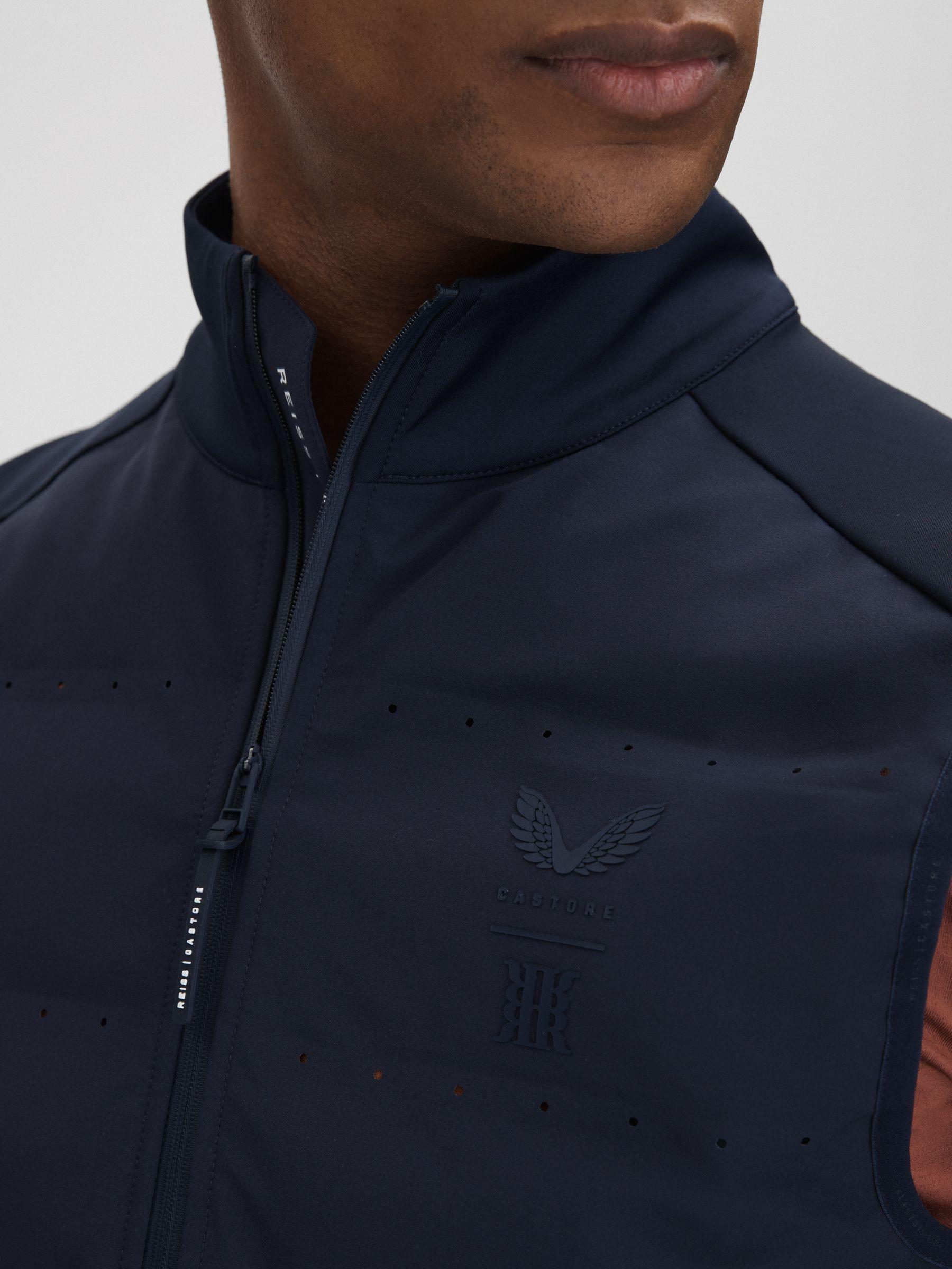 This hybrid Easton gilet features a water-repellent quilted front and back panel, laser cut for ventilation and movement. A knit-backed jersey fabric features to the sides. This garment is engineered with ProTek, a water repellent shield to ensure performance isn’t hindered by the elements. Hybrid quilted design Funnel neckline Zip-front closure Laser-cut ventilation holes Side zipped pockets Dual branding to chest and reverse Reflective patch to reverse Introducing Reiss | Castore is our latest activewear collaboration for men, offering a range of workout clothes in technical moisture-wicking, water-repellent, and breathable fabrications. Enhance the comfort and performance of your exercise clothes with hoodies, lightweight running jackets, cycling shorts, and more.