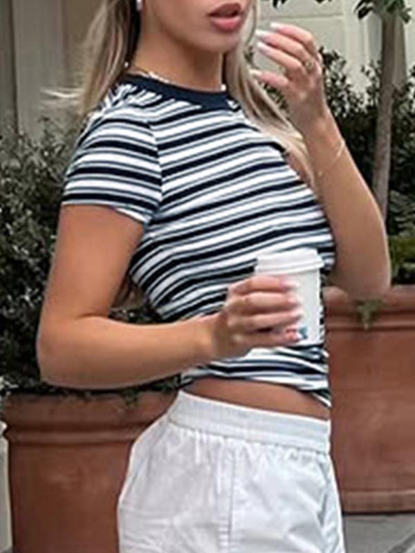 Casual Homewear Stripes Short Sleeve