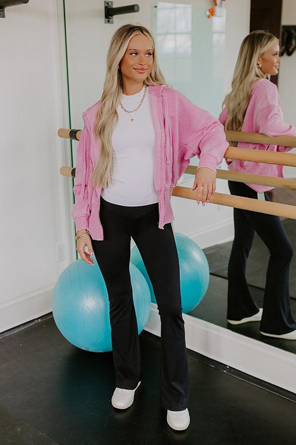 - From Pilates to coffee dates, these flares are a total athleisure dream! The flattering fit and trendy flared design make them perfect for everyday style. - Stretchy butter soft material - A stretchy waistline with an asymmetric v-cut front and an interior accessory pocket on the back - A flattering silhouette that ends in flared hemlines