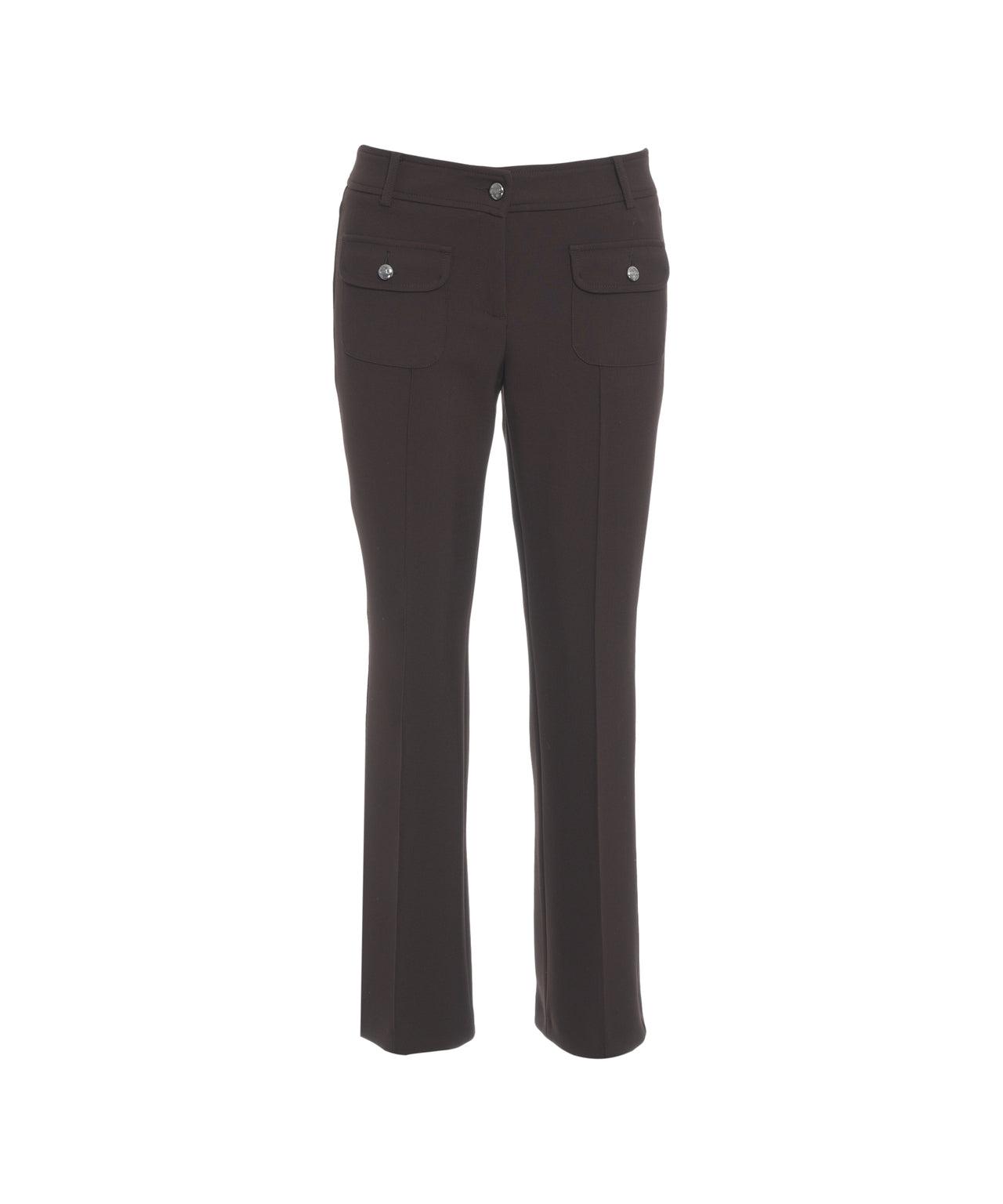 These 'Farah' casual trousers by Cambio feature a classic design. They are characterized by a straight cut and elegant creases, ensuring a sleek silhouette. The applied flap pockets with decorative buttons on the front add a stylish accent to the trousers. An ideal companion for versatile looks.Cambiocasual trousersflap pocketscreasesstraight cutbutton closurezipperdecorative buttonsstraight hem