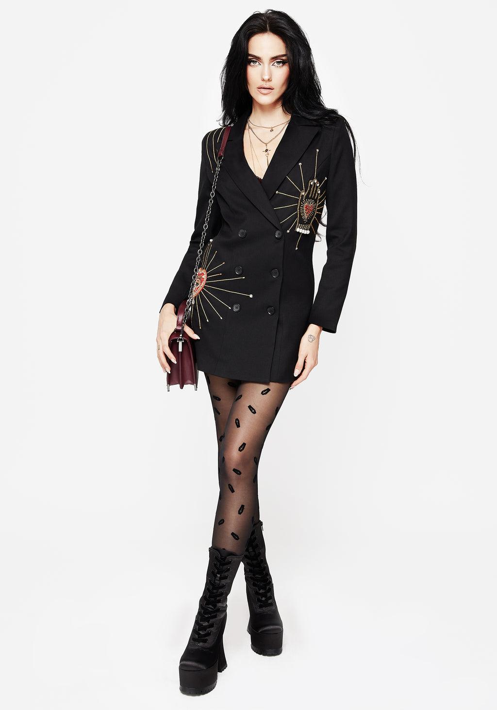Bury me in all my favourite colours - Black flocked velour coffin print tights - Flocked coffin motif scattered across a sheer base - High-rise & stretchy for comfort & coverage - Death becomes you