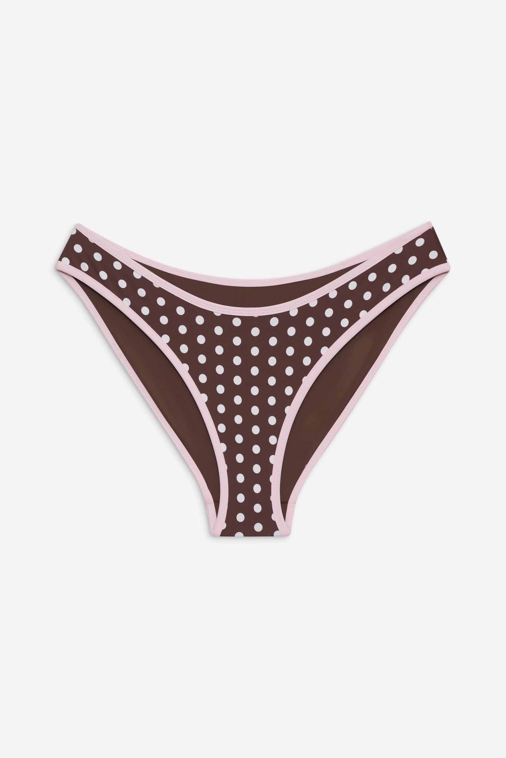 Catalina is our signature full coverage style. This bikini bottom is a modest silhouette designed in a sweet polka dot pattern. Details Flattering high leg fit Fabric 80% Nylon + 20% Spandex Flat Swim Model Size & Fit This style runs true to size Bregje is wearing a size Small Height 5’9” (176m) Bust 33” (84cm), Waist 26" (66cm), Hips 37" (94cm)