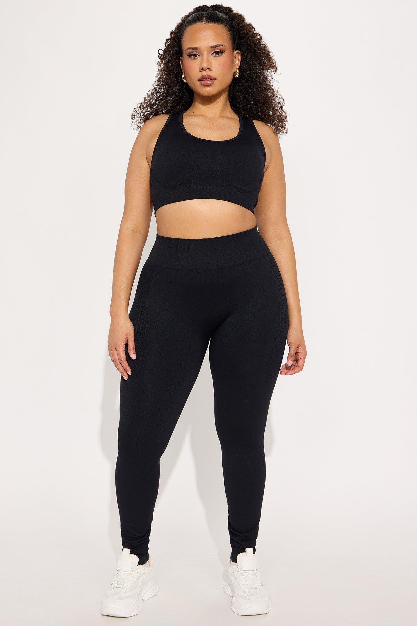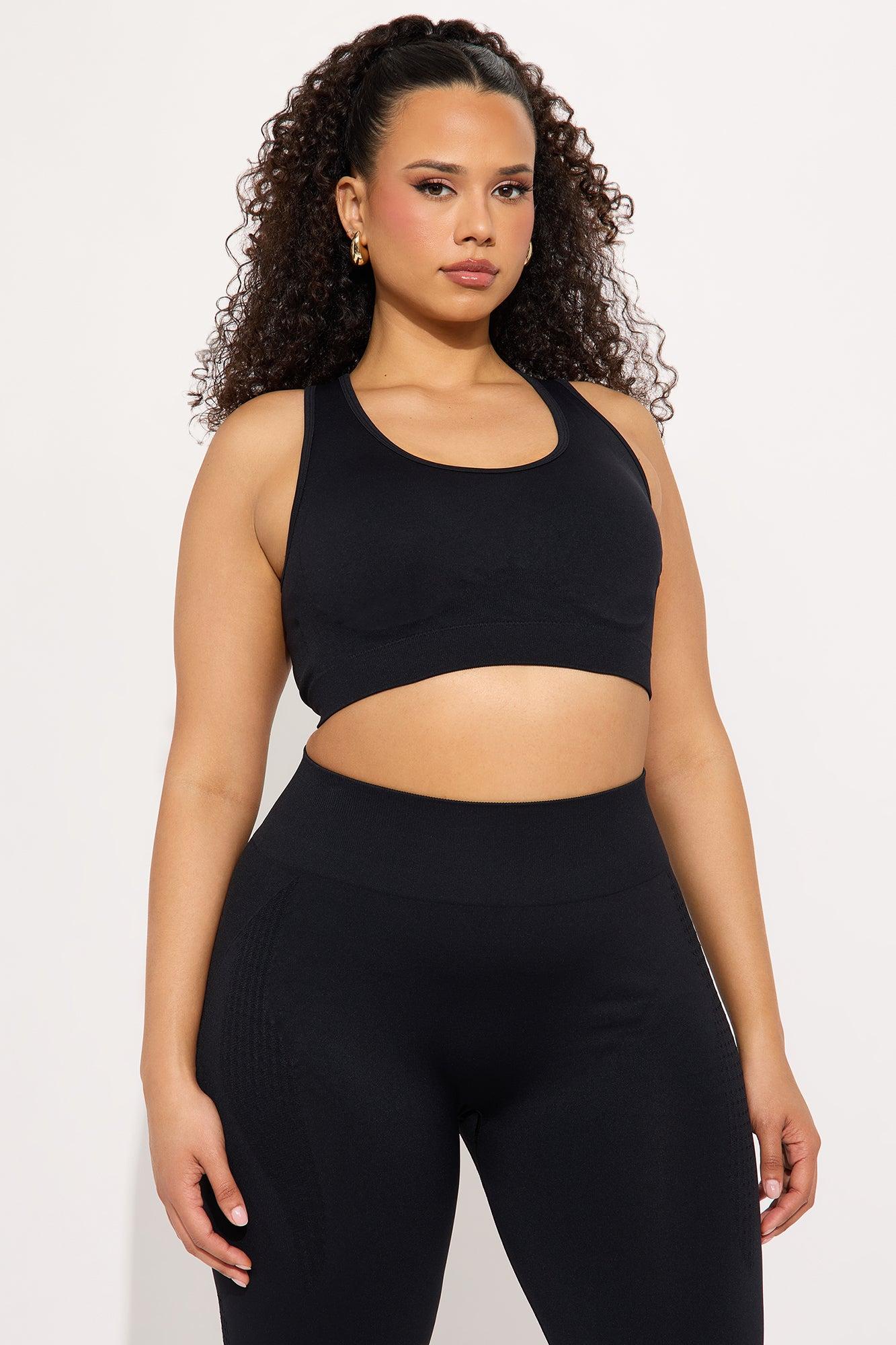 Available In Black. Sports Bra Scoop Neck Sleeveless Seamless Shaping Detail Cut Out Detail Low Impact Stretch Pair With "Catch A Break Seamless Active Legging" Shell: 90% Nylon 10% Spandex Imported