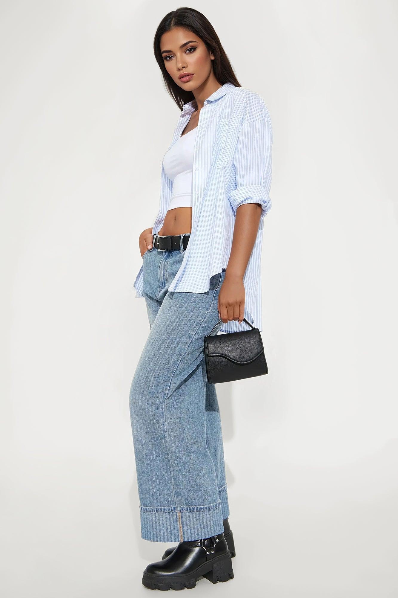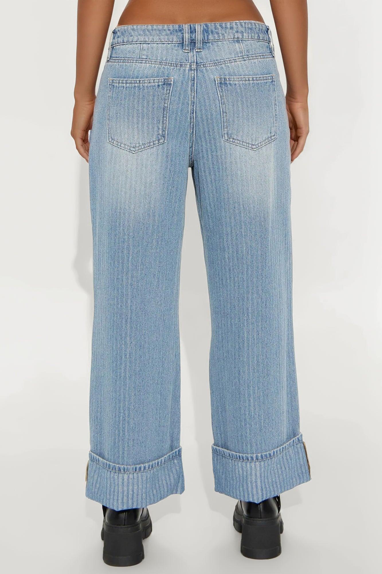 Available In Grey And Vintage Wash. Wide Leg Jean 5 Pocket Herringbone Stripe Tacked Cuffed Hem 11" Rise 27" Inseam Non Stretch Disclaimer Due To The Specialized Wash Process, Each Garment Is Unique. 75% Cotton 25% Polyester Imported California Proposition 65WARNING: Cancer and Reproductive Harm - www.P65Warnings.ca.gov.