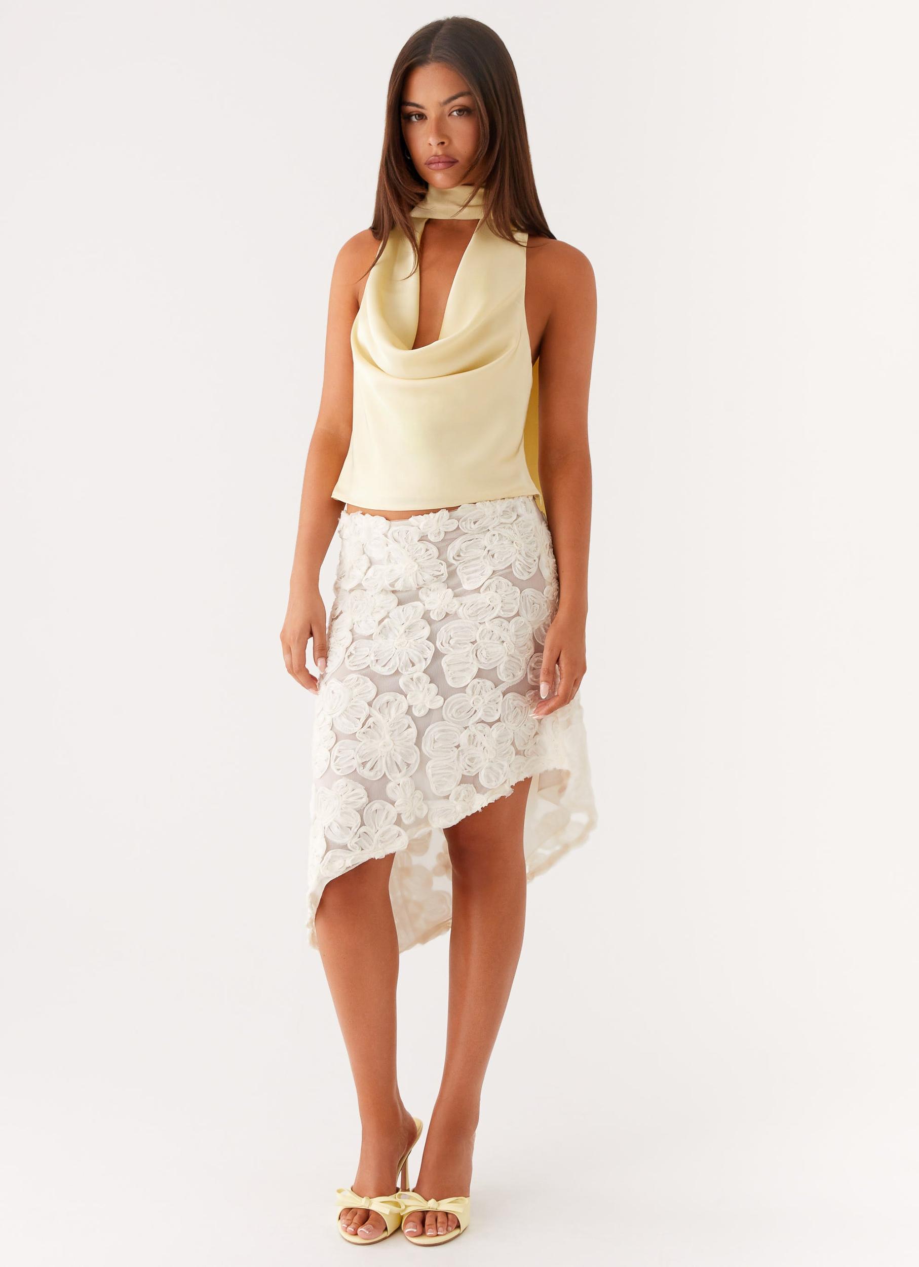 Peppermayo ExclusiveThe Catching Feelings Top is sultry and sleek, designed to make a statement. Featuring a low front cowl neckline and an open back, it strikes the perfect balance between elegance and edge.- Low front cowl - Open back - Thick neck tie - Fully lined - Side invisible zipper - 90% polyester, 10% spandex Size AU 8 / US 4 garment measurements:Length - 46cm / 18.1inBust - 80cm / 31.5inHem - 84cm / 33.1inYasmin is 174cm and wearing a size AU 6 / and US 2