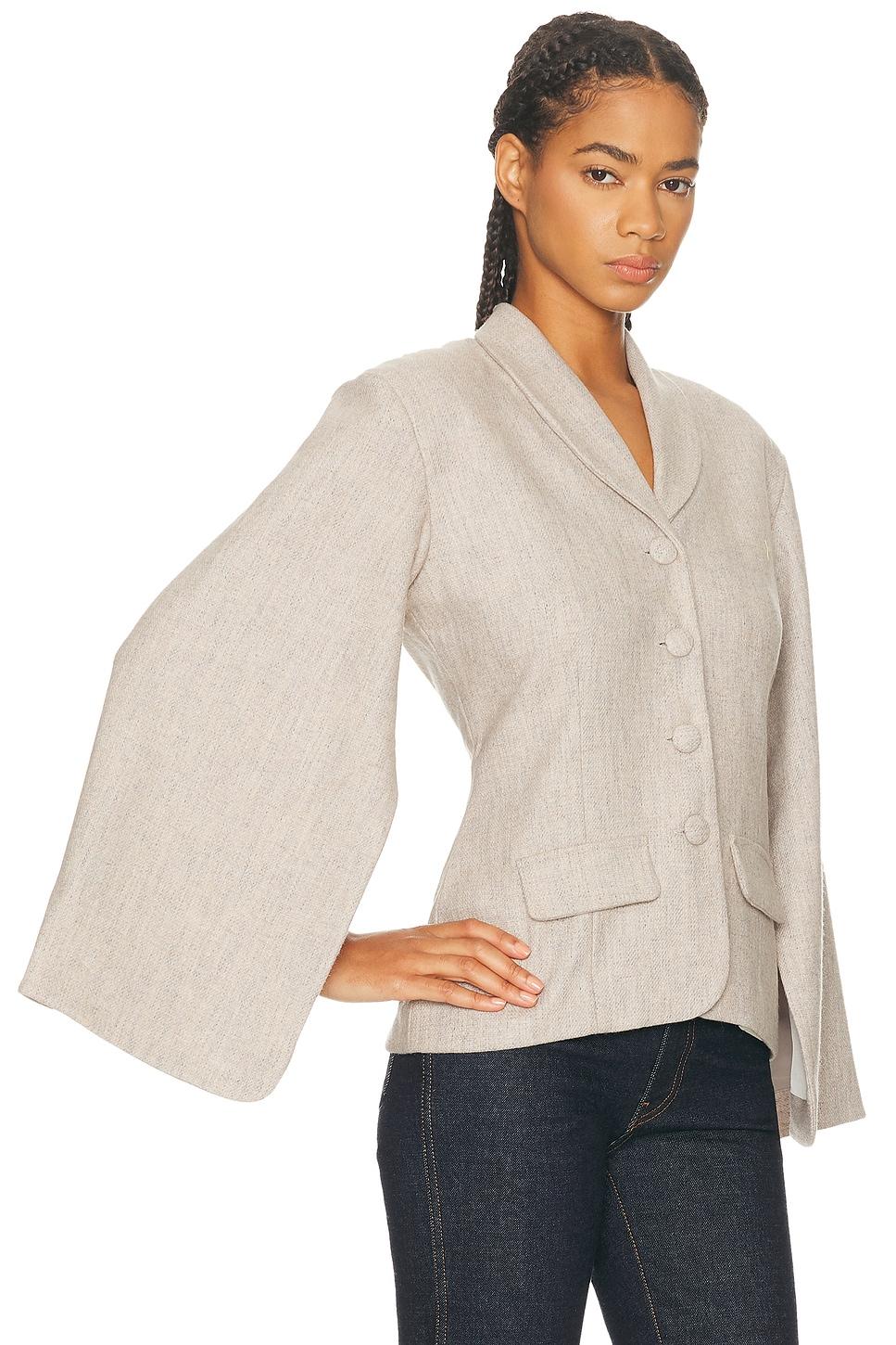 jacket53% wool, 37% polyester, 6% polycarbonate, 2% polyamide, 1% polyurethane, 1% rayonLining: 100% viscose / Made in India / Dry clean only / Our Style No. MSGF-WO1 / Manufacturer Style No. MG-FW25-114 / Model is wearing size S.