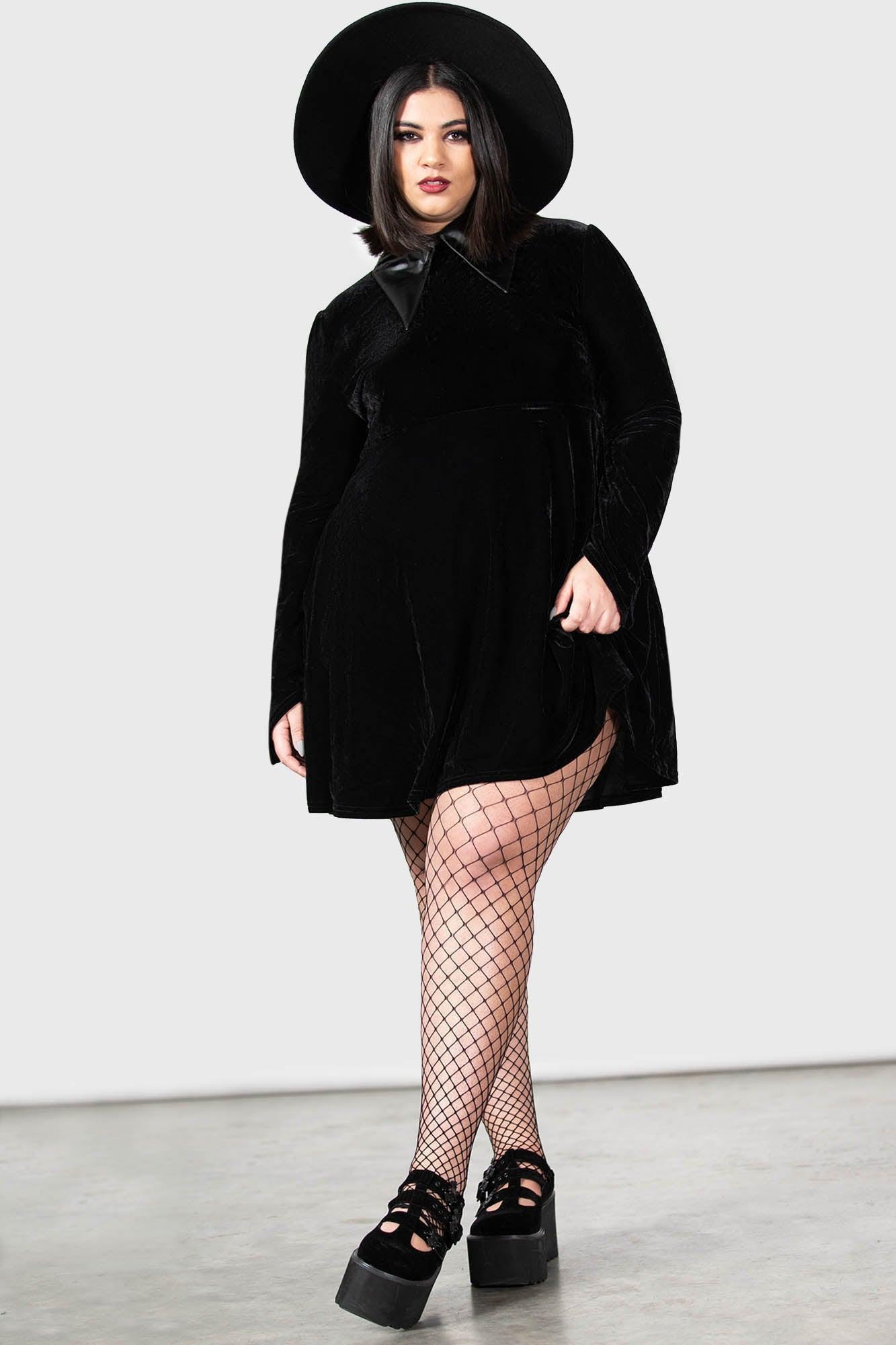 CATHEDRAL II.- Soft, stretch velvet.- Statement, faux leather collar.- Pockets.- Long sleeves.- Skater silhouette.- Fitted.With KILLSTAR branding, 95% Polyester 5% Elastane.Machine wash cold (30°C) / Do not bleach / Do not tumble dry / Iron at low temperature / Do not dry clean.