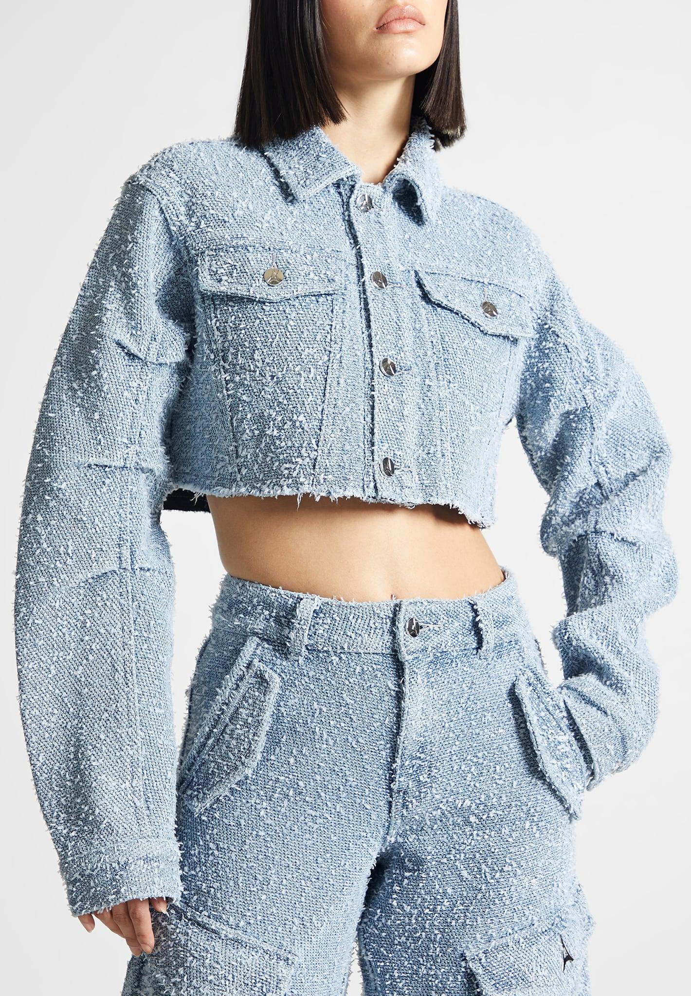 Combining comfort and modern style, this Tacked Sleeve Boucle Denim Jacket is perfect for any fashionista! Its textured fabric provides texture and dimension to any outfit, while its trendy design will keep you up-to-date with the latest fashion. Fabric: Always check the care label for wash instructions. Model is 5'8", 32.5" Bust, 24" Waist, 32" High Hip, 37.5" Low Hip and Wears UK Size 6 Based on UK Size 6 - Front Length cm/in, Chest cm/in, Sleeve Length cm/in Stretch Factor - /3