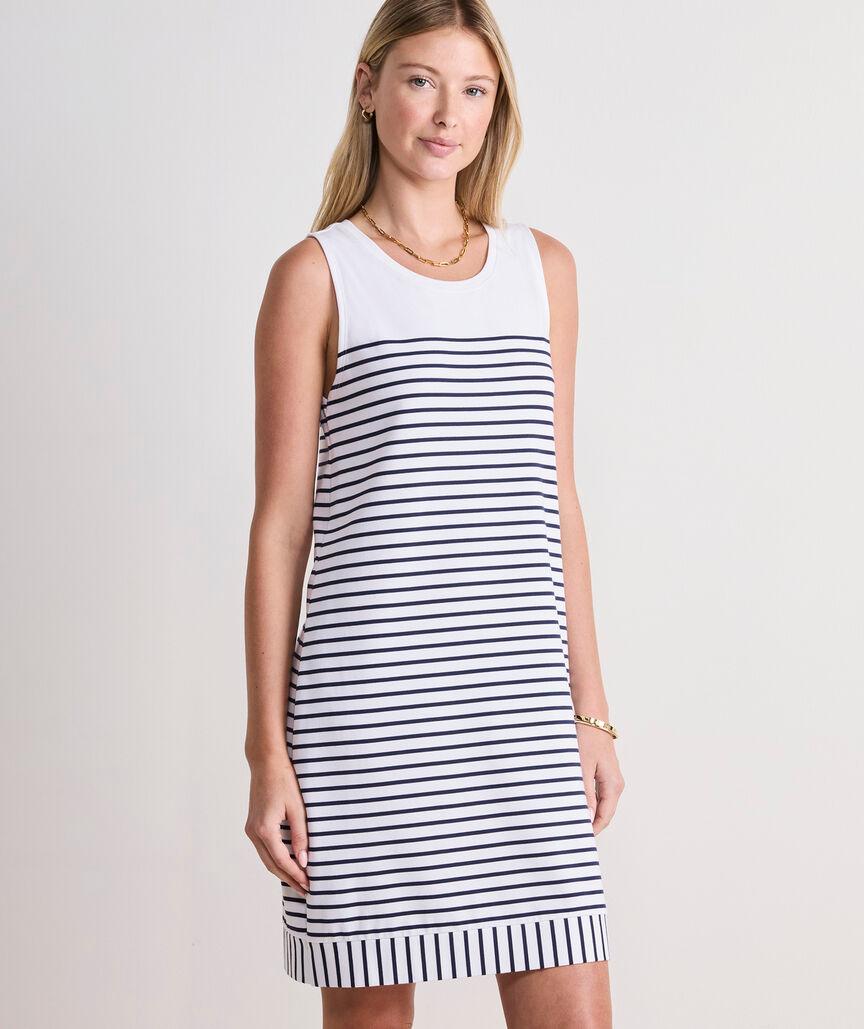 Nautical in essence, this cute, comfy shift dress flaunts an easy-breezy silhouette—perfect for days on the water or sunny strolls through the farmer's market.