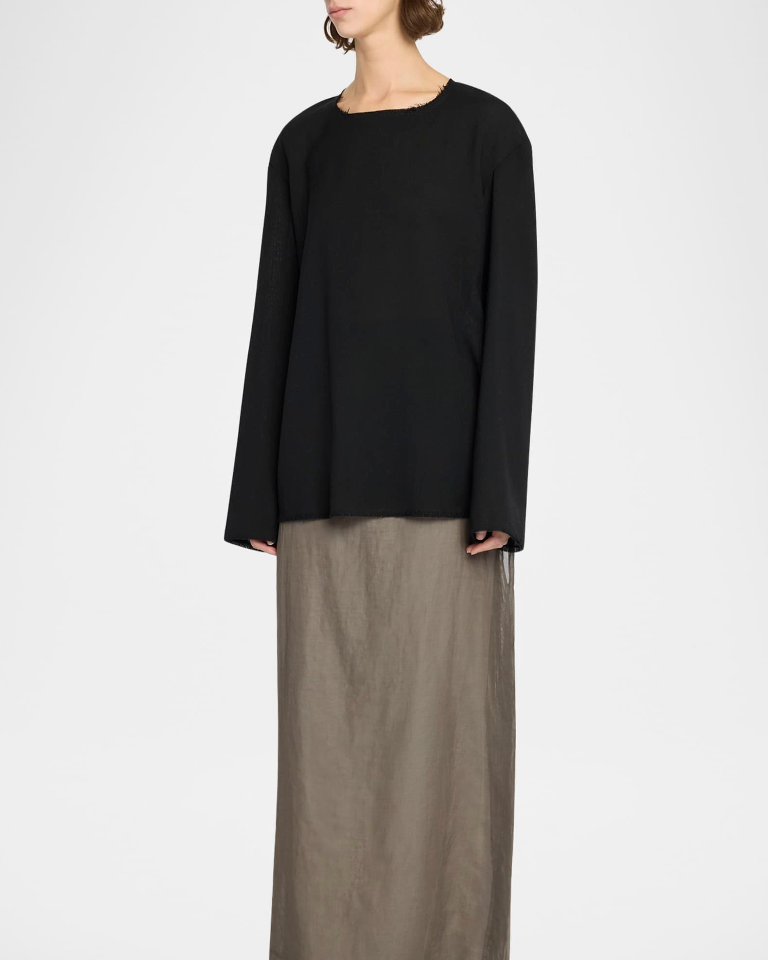 Cattaleya Raw-Edge Long-Sleeve Wool Top
