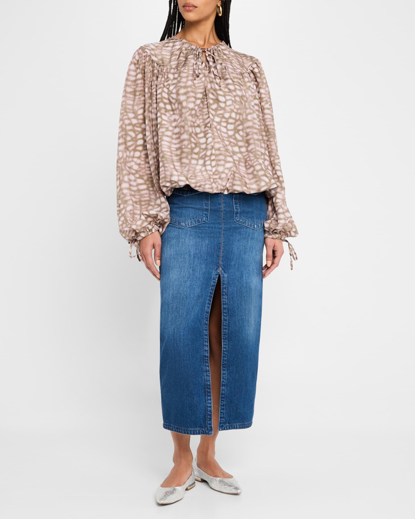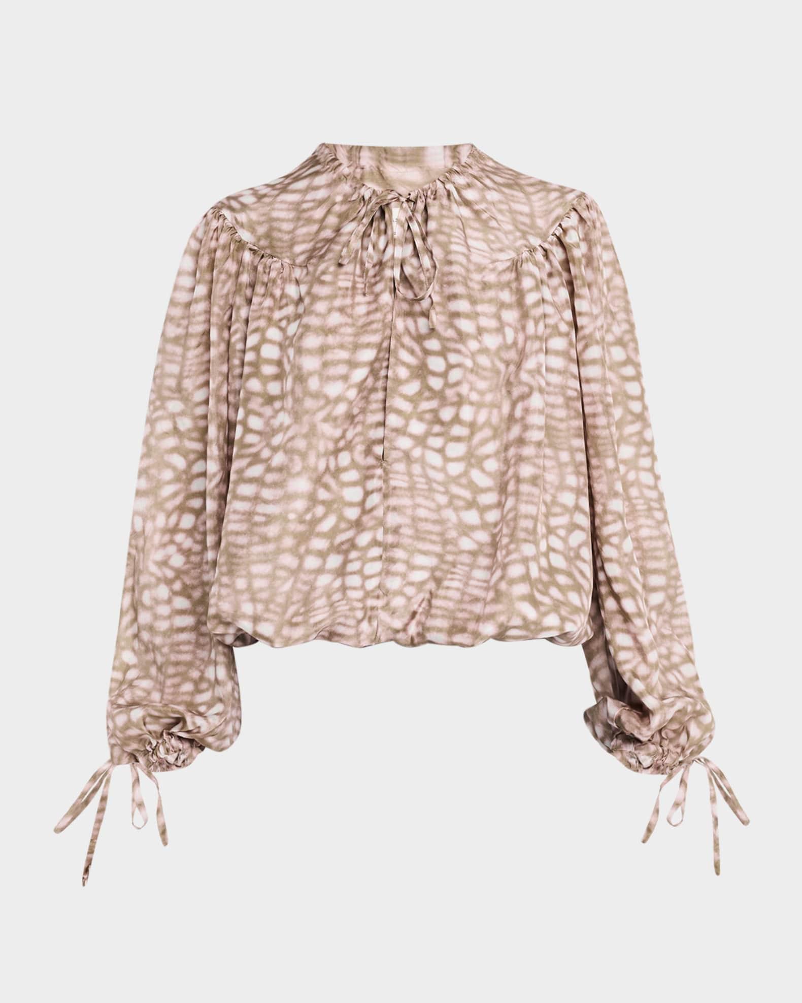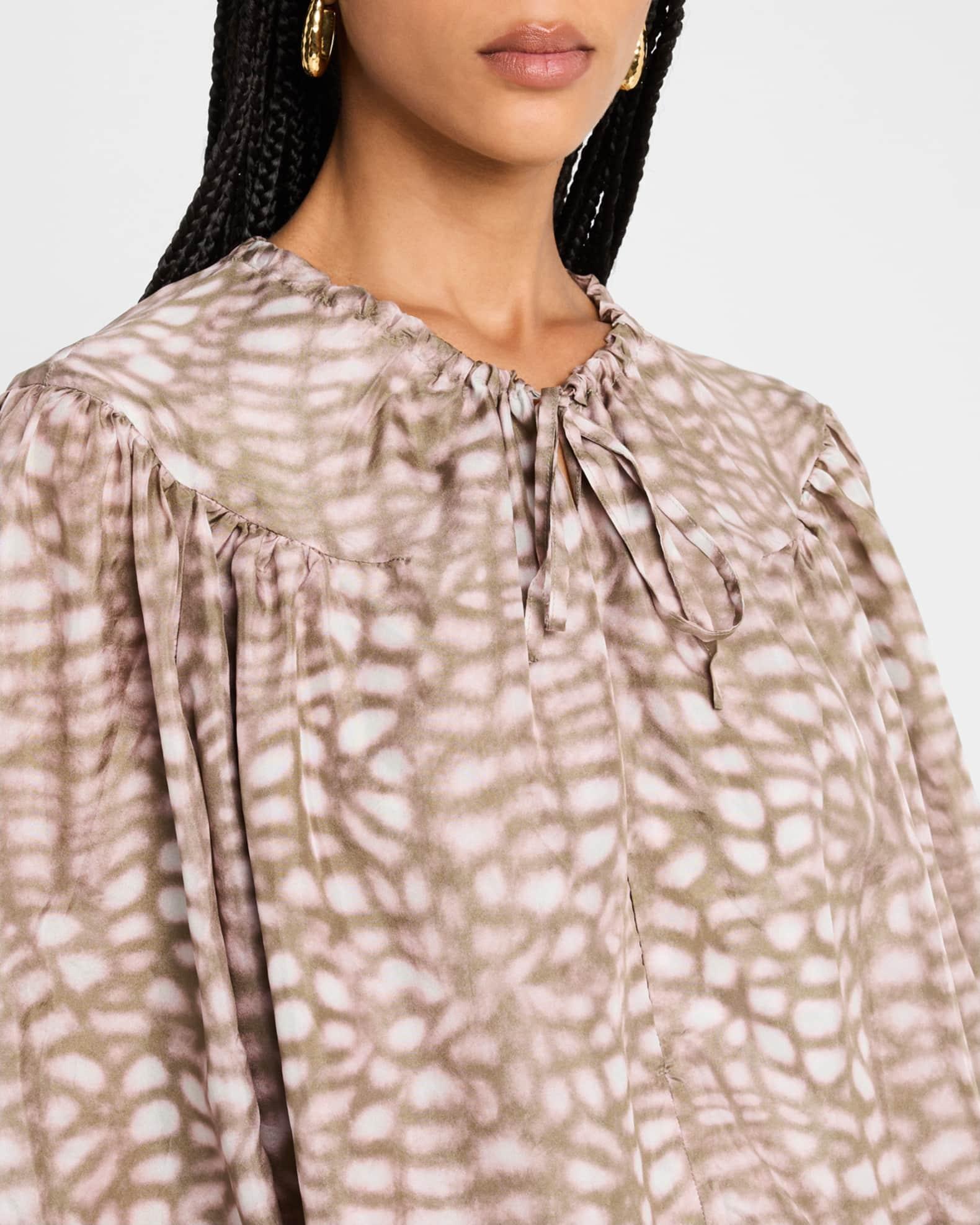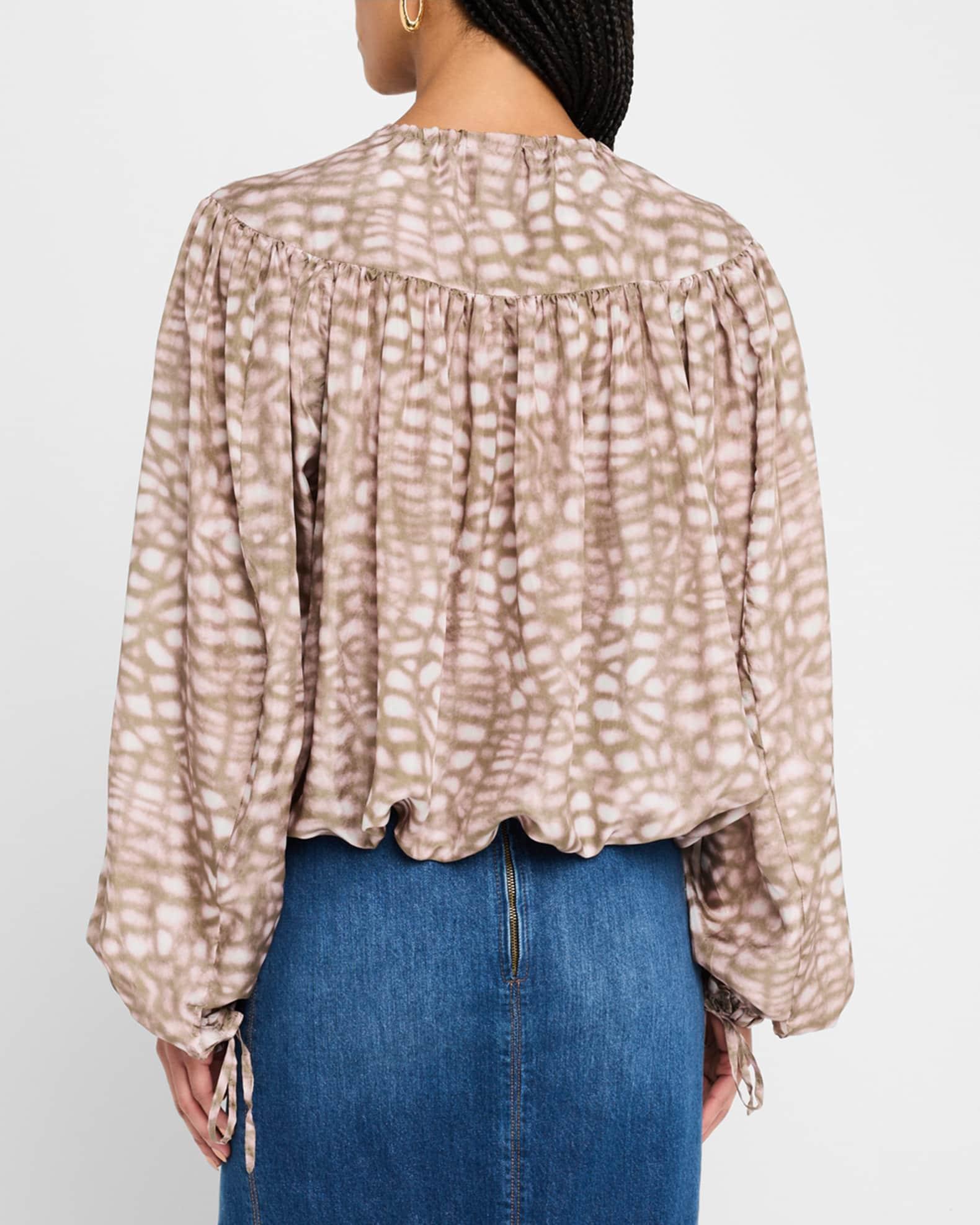 Catti Printed Balloon-Sleeve Silk Blouse