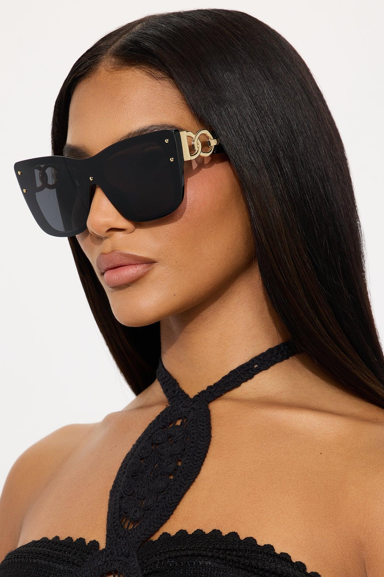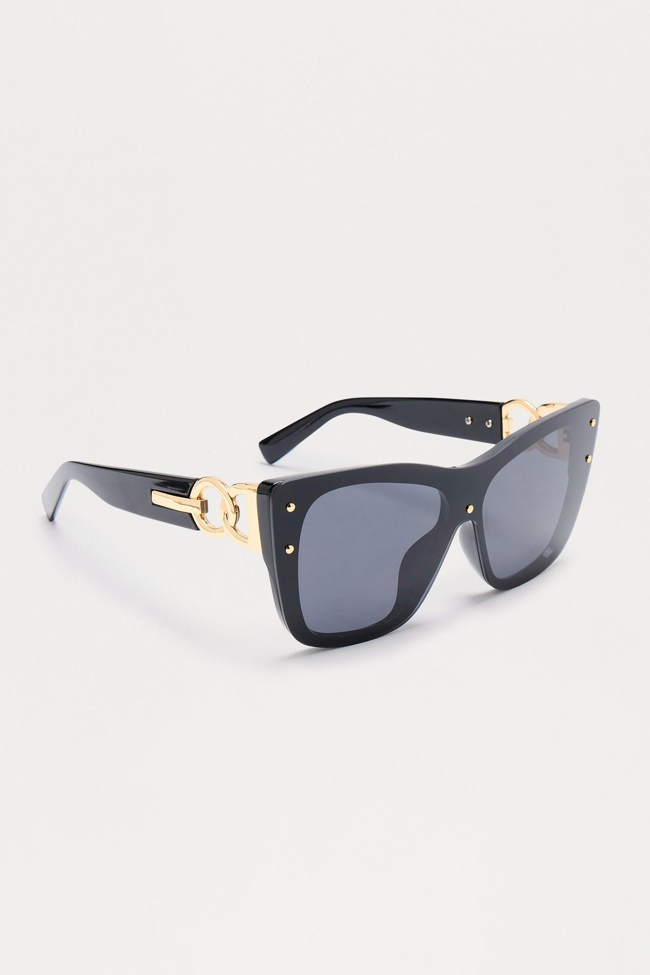 Catty Yet Chic Oversized Cat Eye Sunglasses - Gold/Black Female