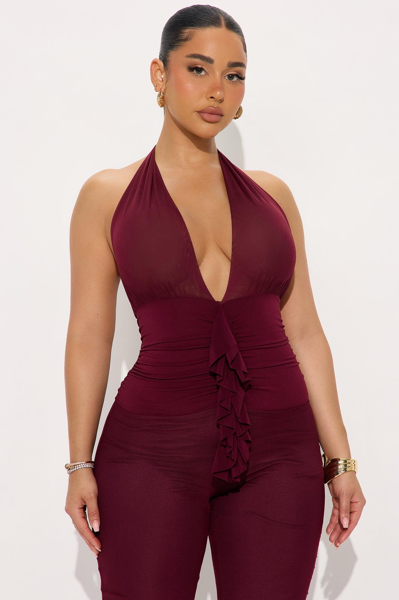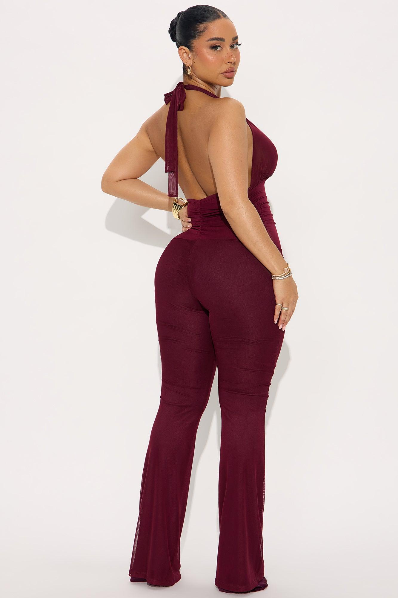 Serving Looks Mesh Jumpsuit - Burgundy Female