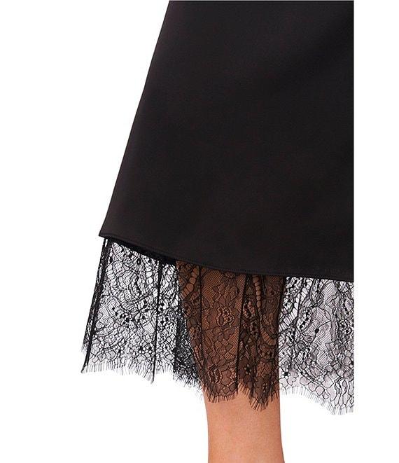 From CeCe, this skirt features: Woven fabrication A-line silhouette Midi length Lace detail Invisible side zipper closure Approx. 34" in length Polyester Dry clean Imported.