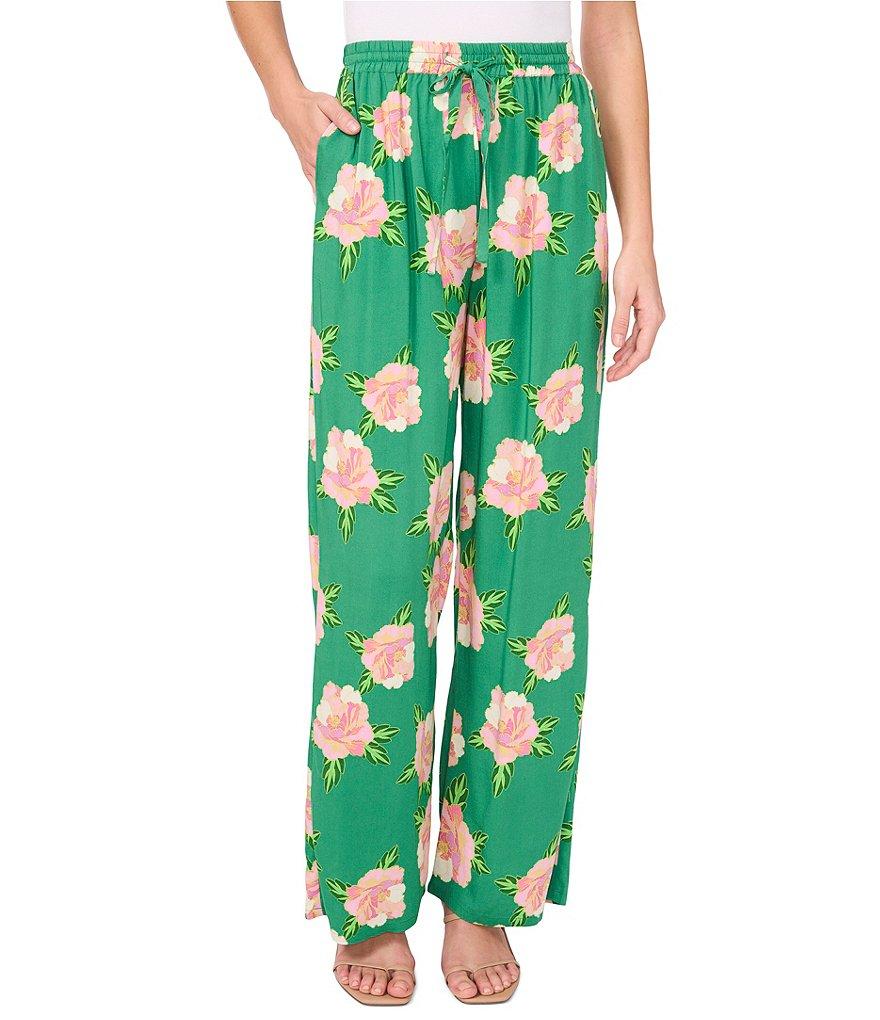 CeCe Floral Print Tie Front Wide Leg Pants
