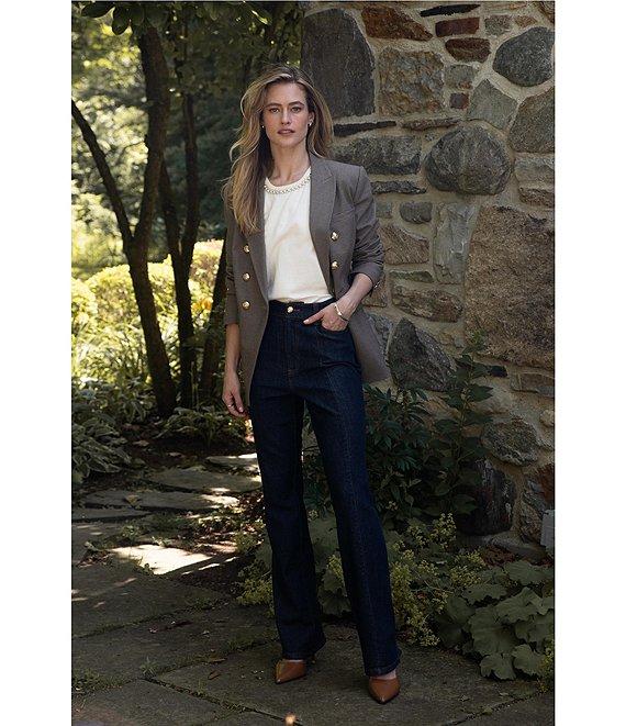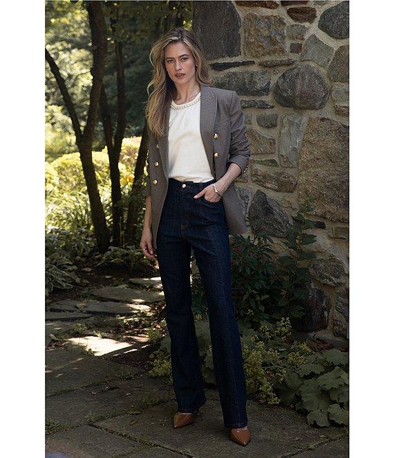 From Cece, these jeans feature: Flare leg silhouette 5 pocket styling High rise Full length Front button and zipper closure Approx. 31" inseam Cotton Machine wash Imported.