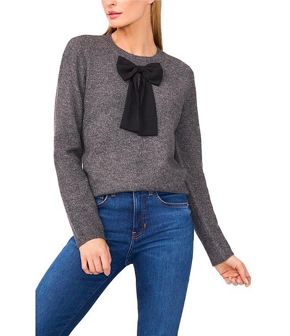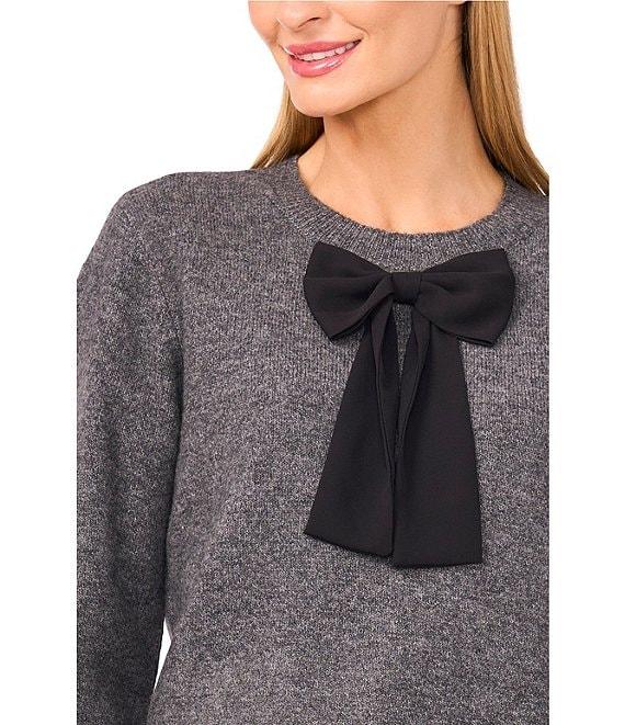 CeCe Knit Round Neck Long Sleeve Bow Sweater