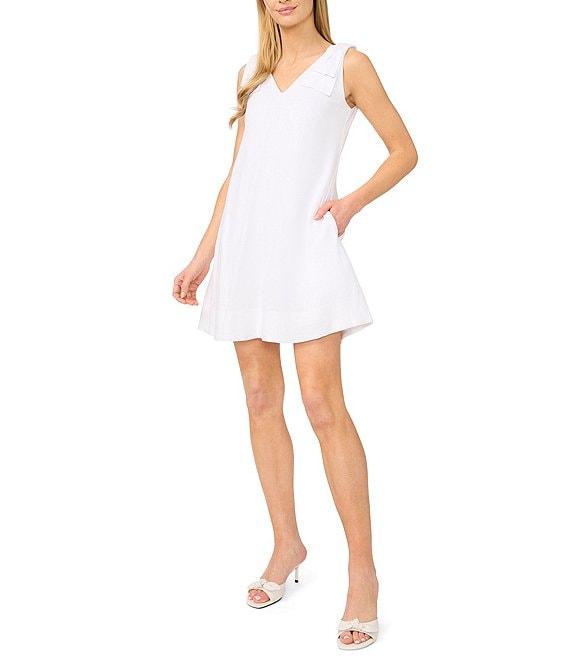 CeCe Linen Blend V-Neck Sleeveless A-Line Dress