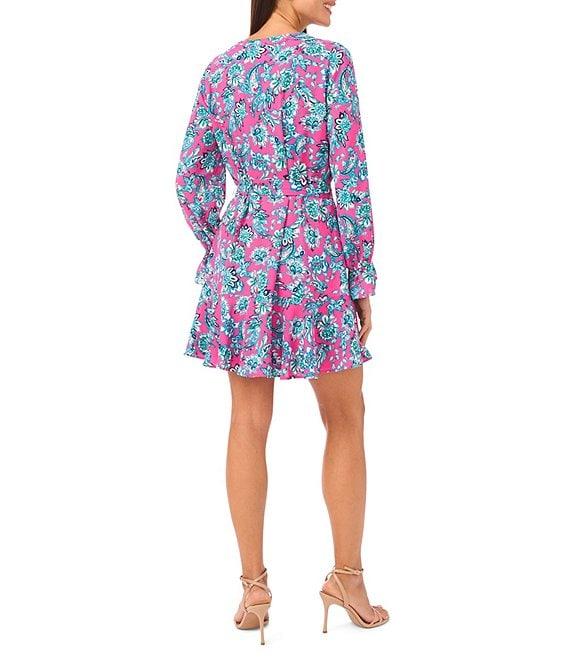 CeCe Paisley Print V-Neck Long Flounce Sleeve Mini A-Line Dress