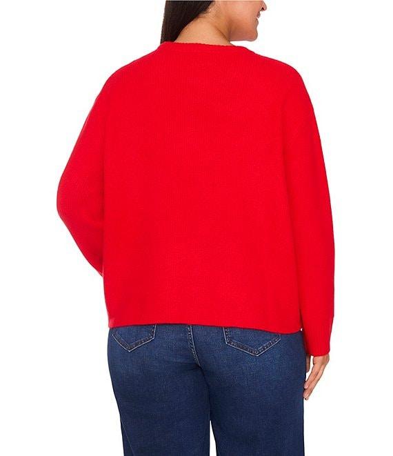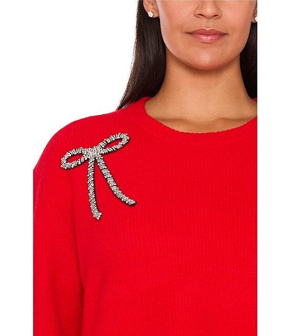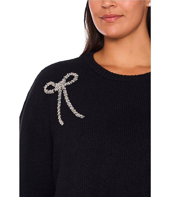 CeCe Plus Size Round Neck Long Sleeve Embellished Bow Sweater