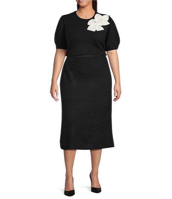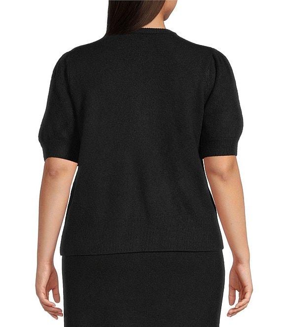 CeCe Plus Size Round Neck Short Sleeve Bow Detail Coordinating Sweater