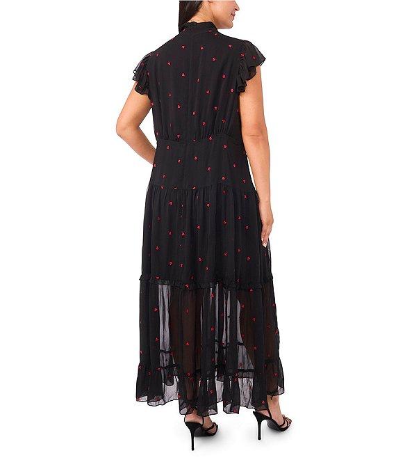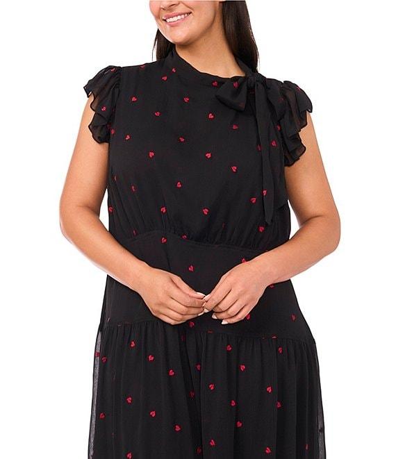 Cece Plus Size Tie Neck Short Sleeve Tiered Midi A-Line Dress