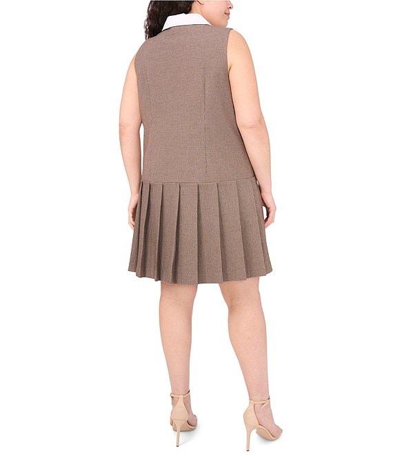 CeCe Plus Size Tweed Houndstooth Print Point Collar Sleeveless Button Front A-Line Dress