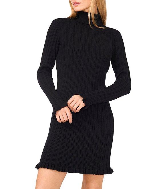 CeCe Ribbed Knit Turtle Neck Long Sleeve Sweater Dress