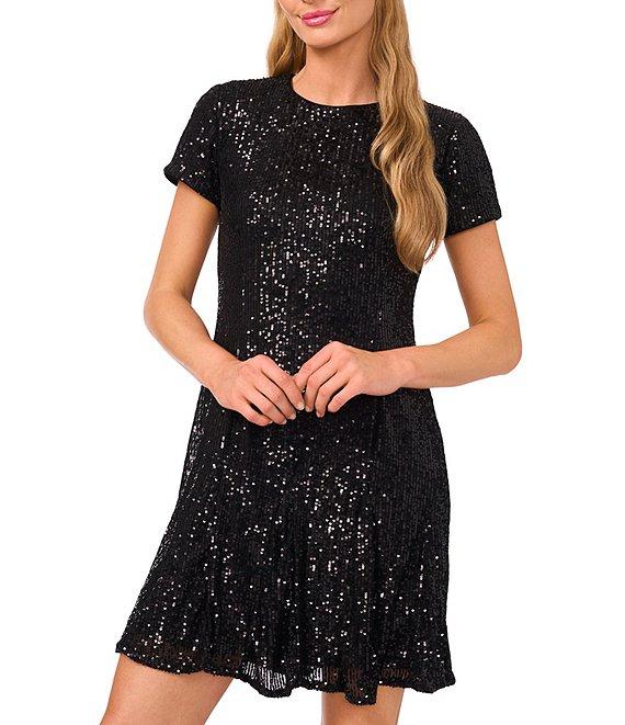 CeCe Sequin Round Neck Short Sleeve Mini Dress