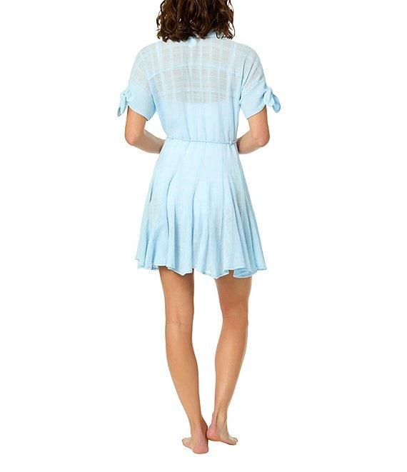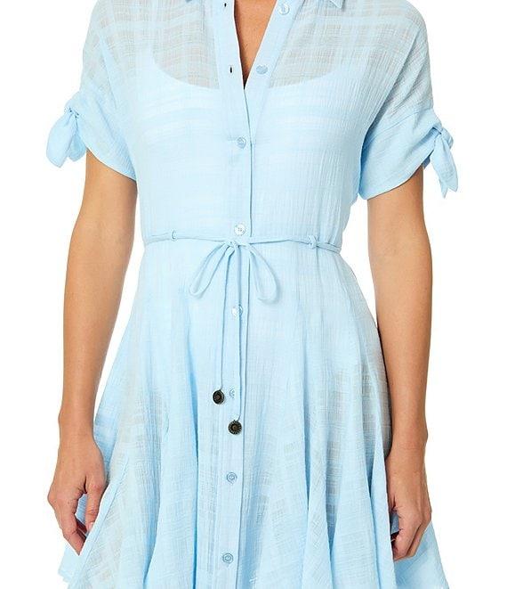 CeCe Short Pleated Flare Button-Front Swim Belted Dress Cover-Up
