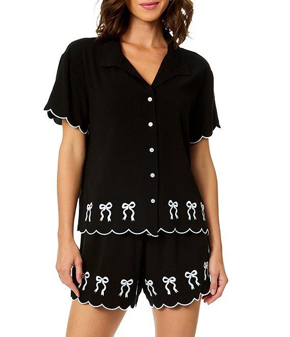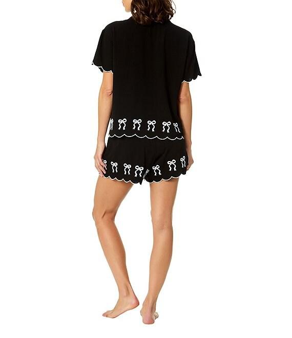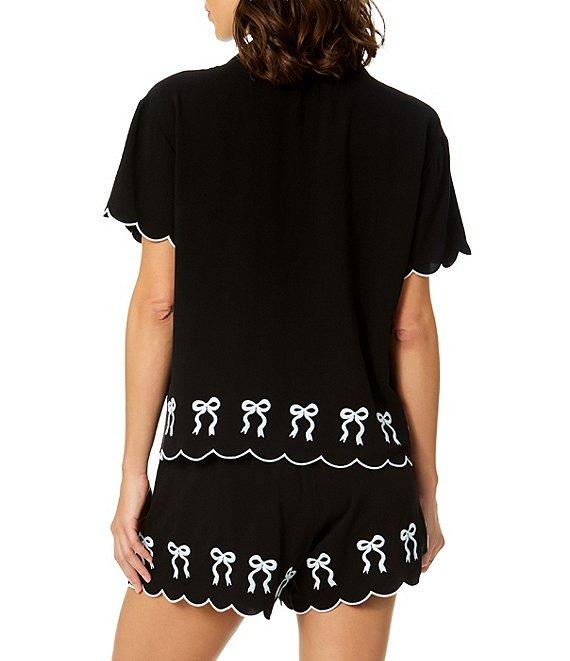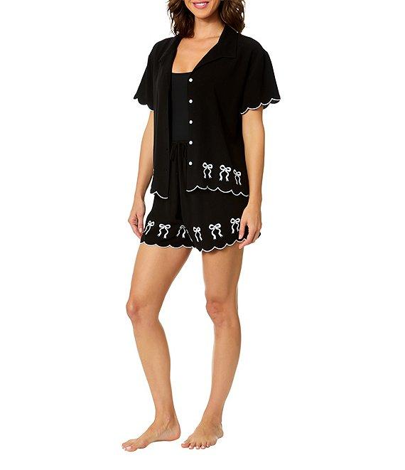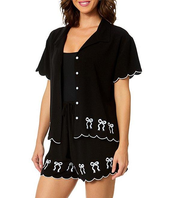 CeCe Tied Love Embroidered Scalloped Bow Print Swim Cover-Up Short