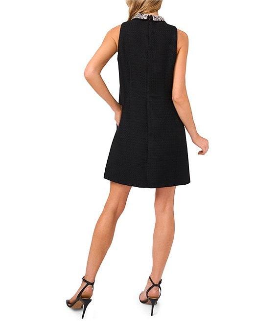 CeCe Tweed Embellished Collar Sleeveless A-Line Mini Dress