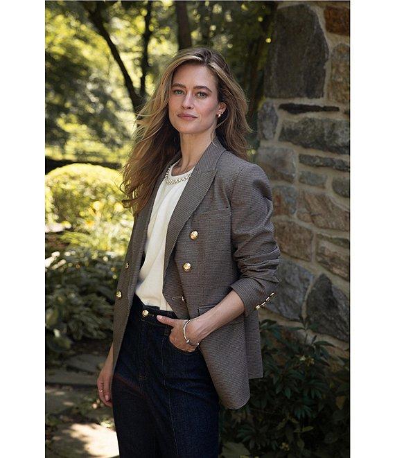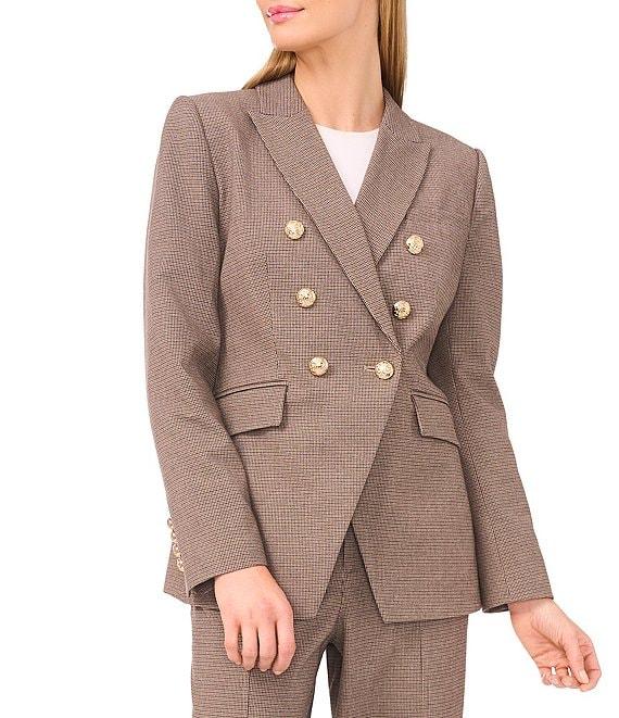 CeCe Tweed Notch Collar Long Sleeve Double Breasted Blazer