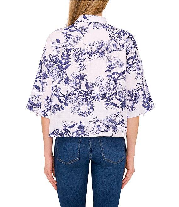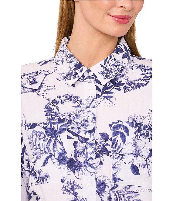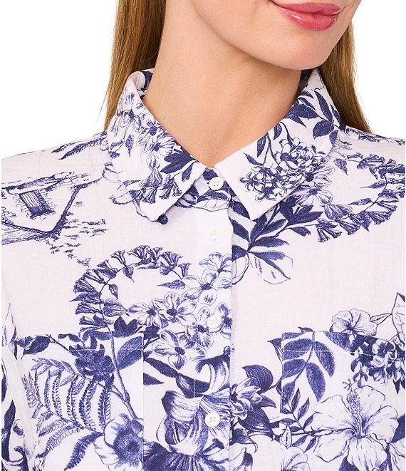 CeCe Woven Floral Print Collared Button Down Coordinating Top