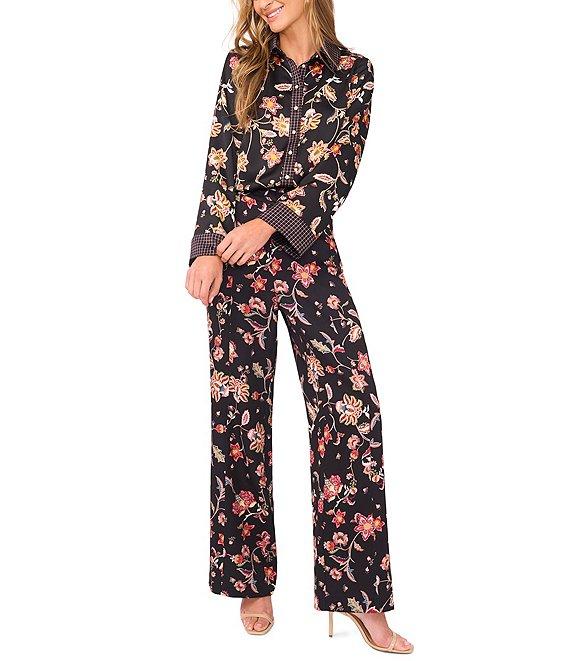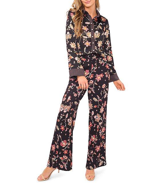 CeCe Woven Paisley Print Straight Leg Coordinating Pants
