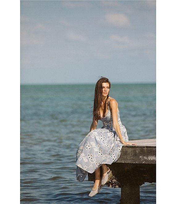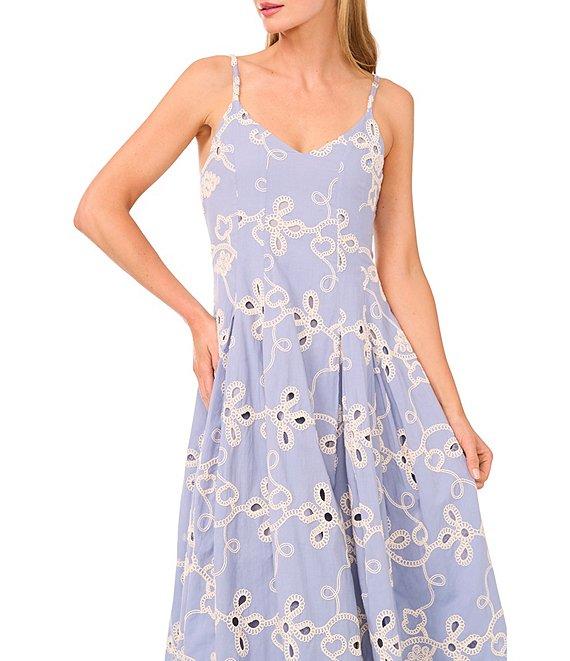 CeCe Woven V-Neck Sleeveless Embroidered Maxi A-Line Dress