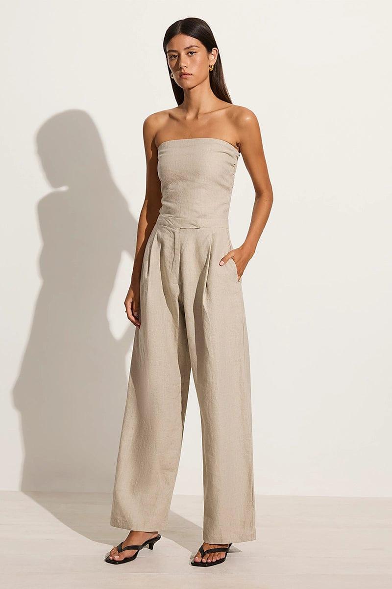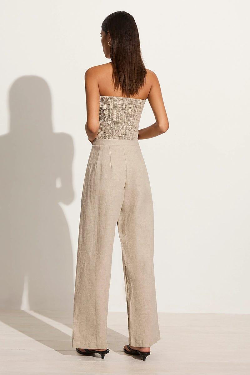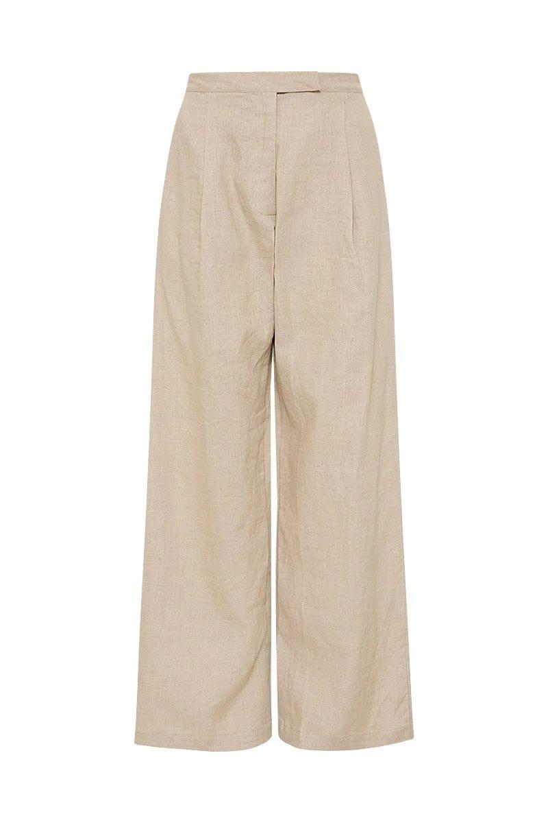 Discover signature linen tailoring in the Cedros Pants in Natural Linen. These high-waisted trousers are designed with a wide leg shape, extended waist tab closure, hip pockets and front pleats to form an effortless and relaxed silhouette. Thoughtfully cut from European Flax® linen boasting complete traceability and socially responsible standards.