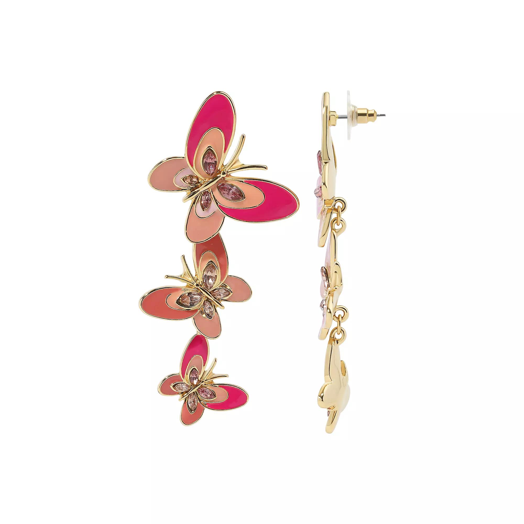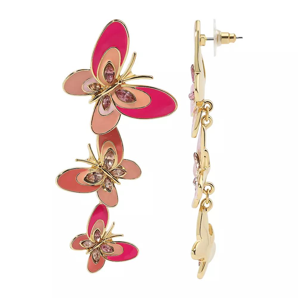 Make a statement with these Celebrate Together gold-tone enamel linear drop butterfly earrings. Their delicate winged design adds graceful movement and a nature-inspired touch to your look. Click on this JEWELRY & WATCHES GUIDE to learn about fit, styles, materials and more! Make a statement with these Celebrate Together gold-tone enamel linear drop butterfly earrings. Their delicate winged design adds graceful movement and a nature-inspired touch to your look. Click on this JEWELRY & WATCHES GUIDE to learn about fit, styles, materials and more! FEATURES Length: 73 mm Backings: post Nickel free Metal: zinc Material: enamel, glass Plating: gold tone Finish: polished Size: One Size. Color: Pink. Gender: female. Age Group: adult.