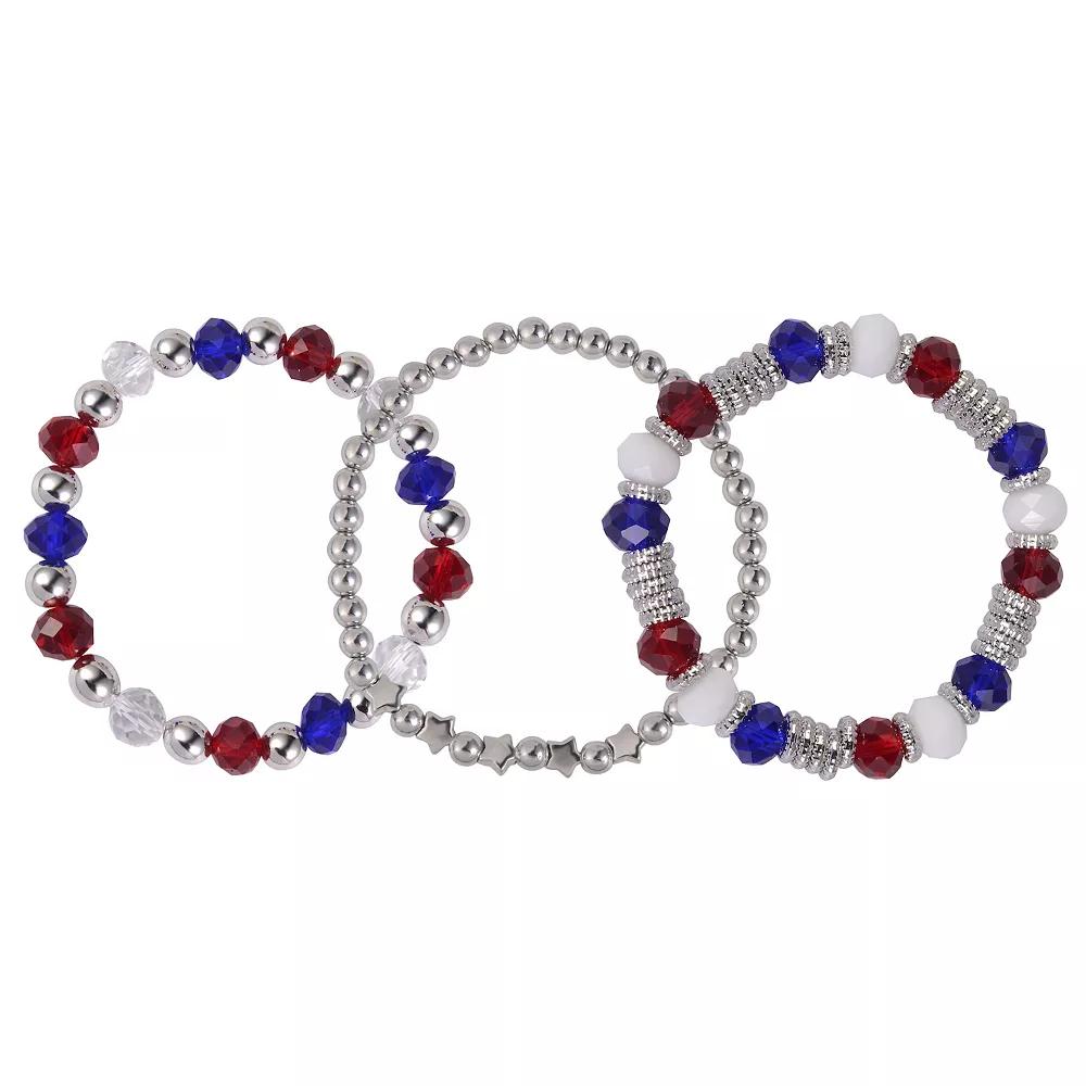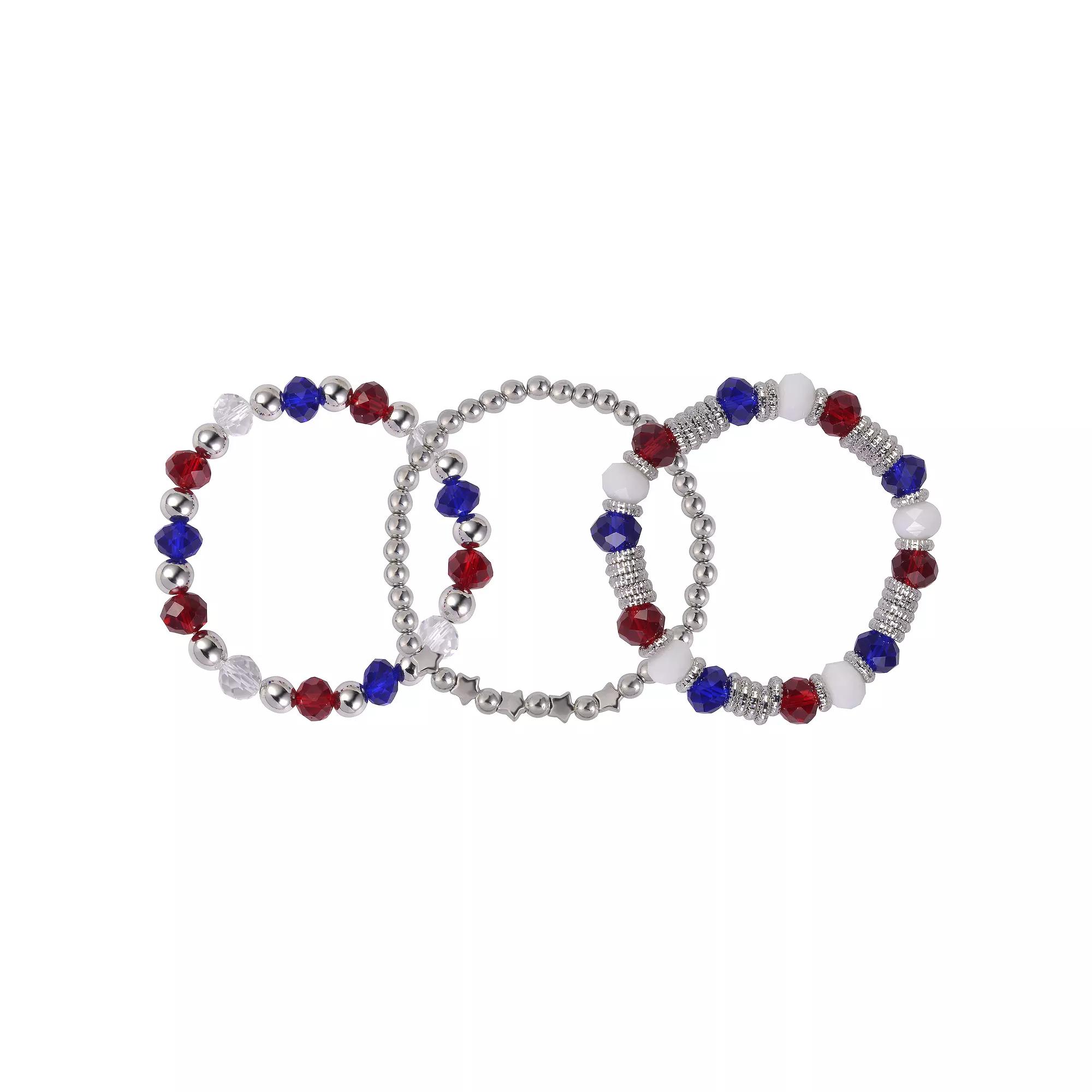 Add a patriotic touch to your wardrobe with this Celebrate Together silver tone red, white and blue beaded stretch bracelets 3-piece set. Click on this JEWELRY & WATCHES GUIDE to learn about fit, styles, materials and more! Add a patriotic touch to your wardrobe with this Celebrate Together silver tone red, white and blue beaded stretch bracelets 3-piece set. Click on this JEWELRY & WATCHES GUIDE to learn about fit, styles, materials and more! FEATURES 3 bracelets included Clasp: slider Nickel free Metal: zinc Alternative Materials: glass Plating: silver tone Finish: polished Imported Not appropriate for children 14 years old and younger. Size: One Size. Color: Multi. Gender: female. Age Group: adult.