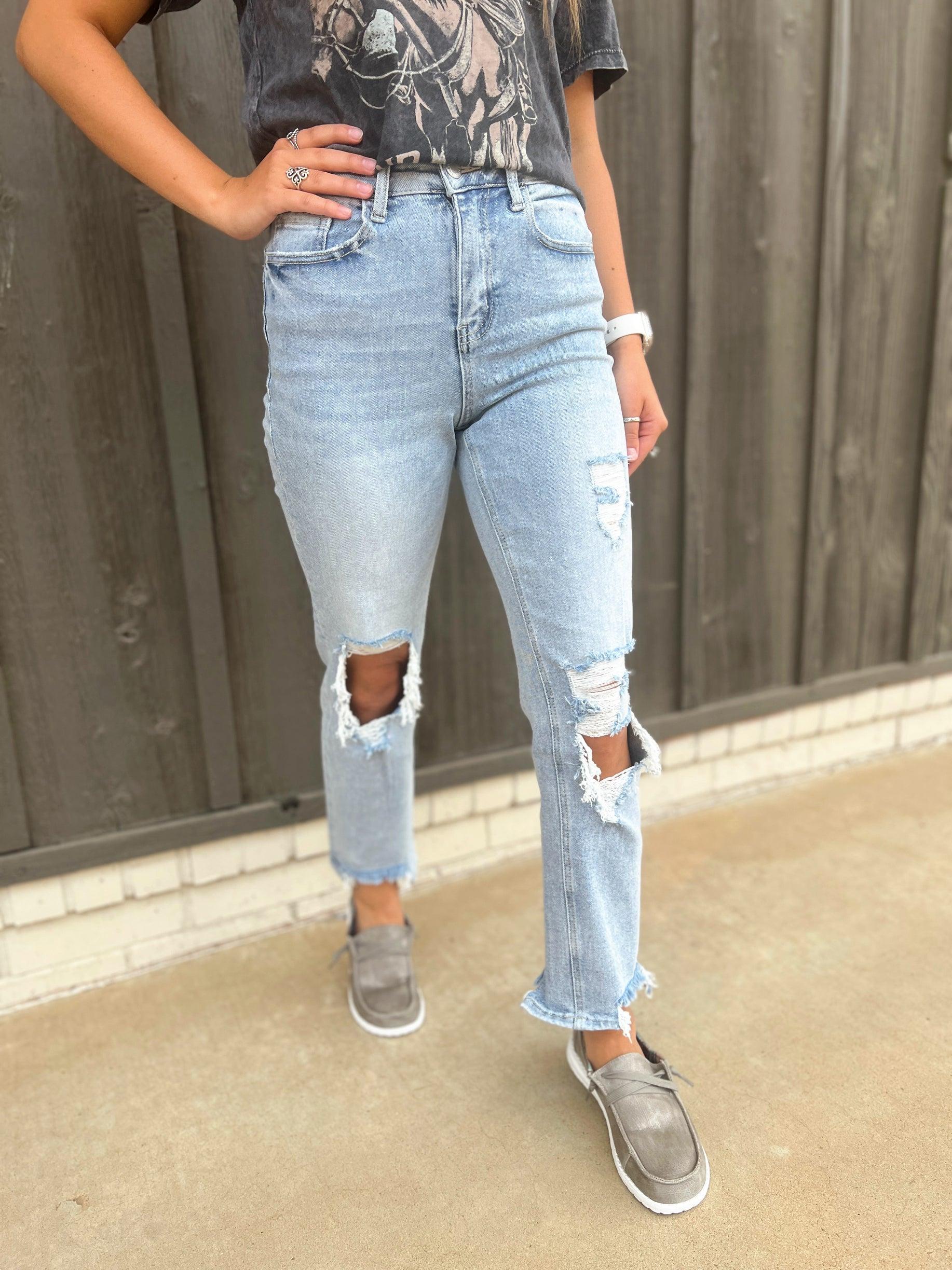 Get ready to rock that 90's look with our Celebration 90's Dad Jeans! These cropped denim beauties feature a raw hem, stylish distressing, and holes at the knees for a cool, vintage vibe. Perfect for casual everyday wear, our women's denim jeans will elevate your wardrobe and turn heads. Order now and relive the best decade of fashion! 95 % Cotton 4% Polyester 1% Soandex